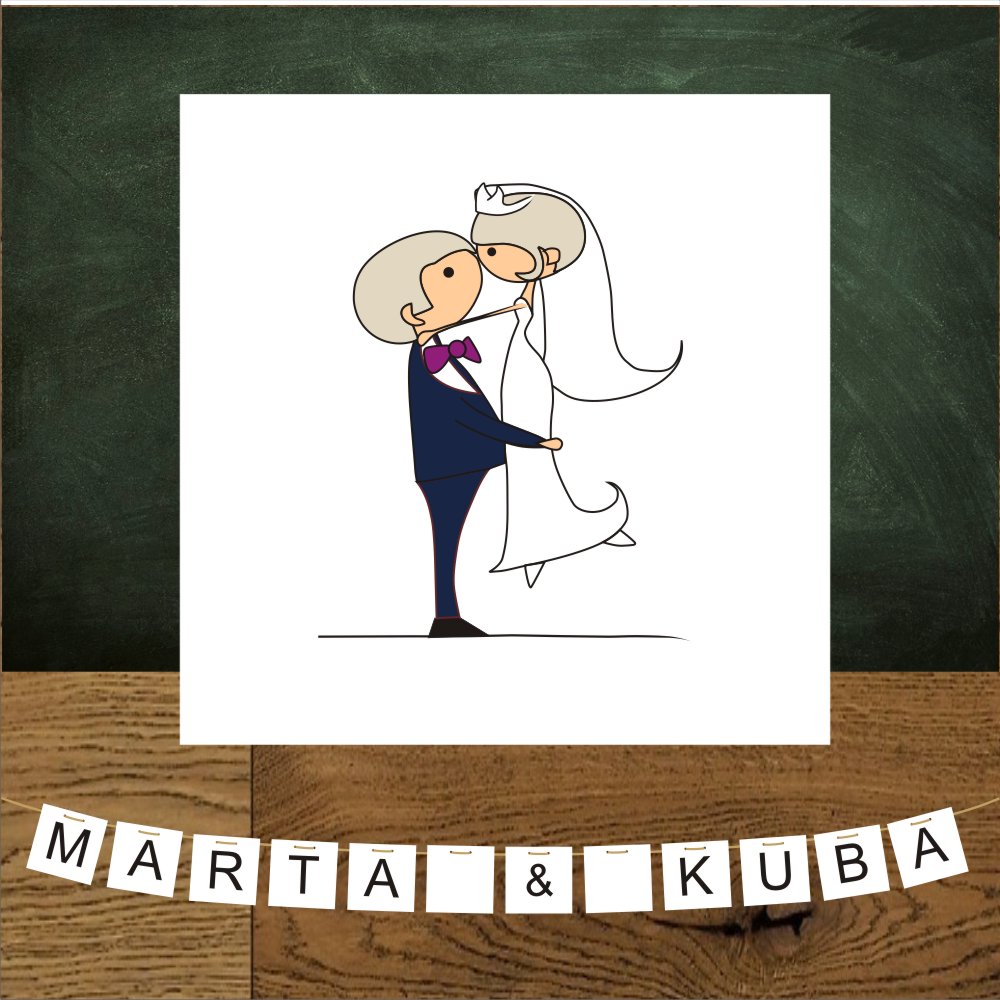 Baner ślubny do zawieszenia, ze śmieszną grafiką pary Młodej