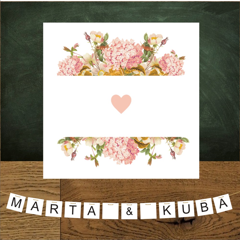Zaproszenia ślubne hortensje różowe i jaśmin
