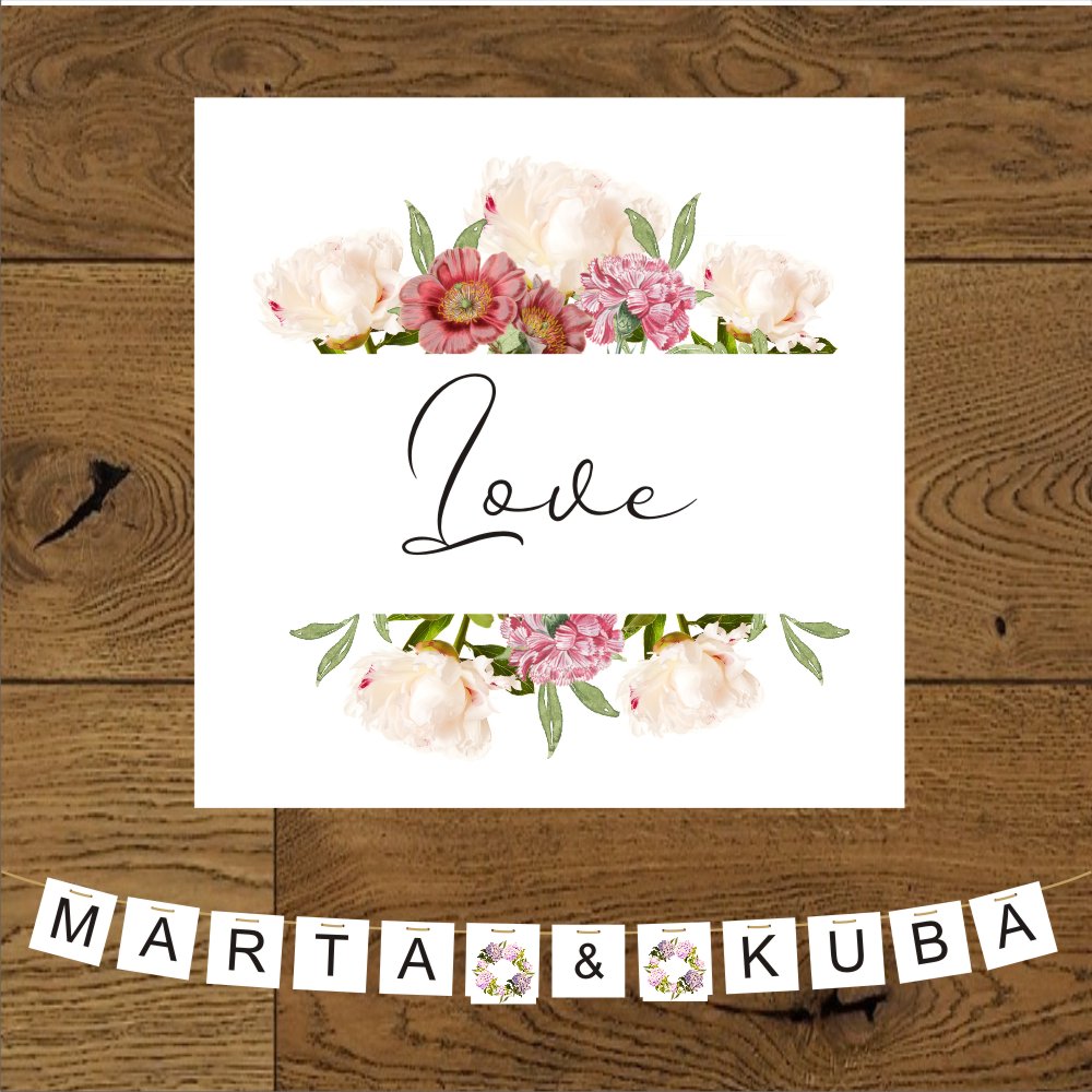 Zaproszenia na ślub i wesele boho. Kwadratowe, proste. Kwiaty romantyczny ogród i goździk.