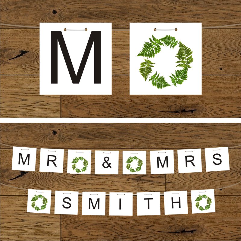 Zaposzenie ślubne z gałązkami paprotki. Kwadratowe, proste. Paprotka