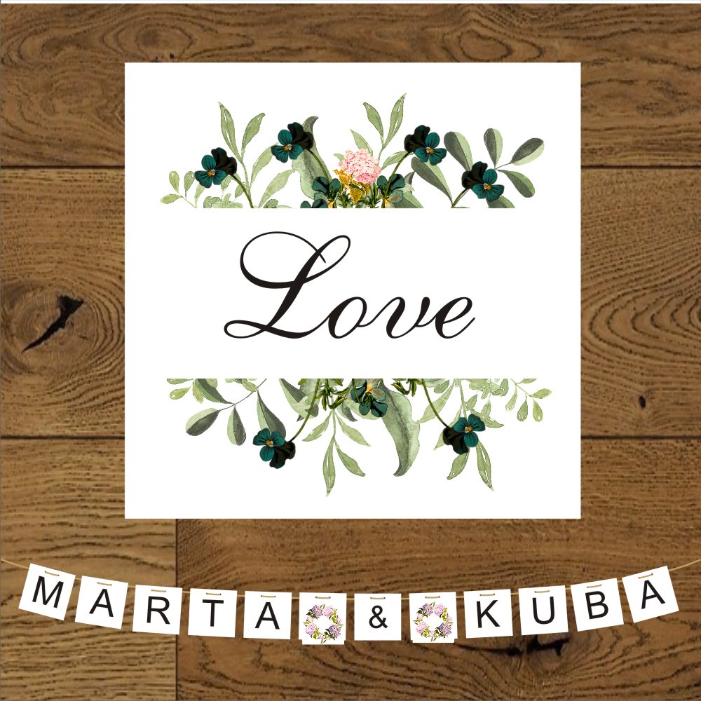 Front do pudełek na koperty Zielone listki , szmaragdowe kwiatki i serce