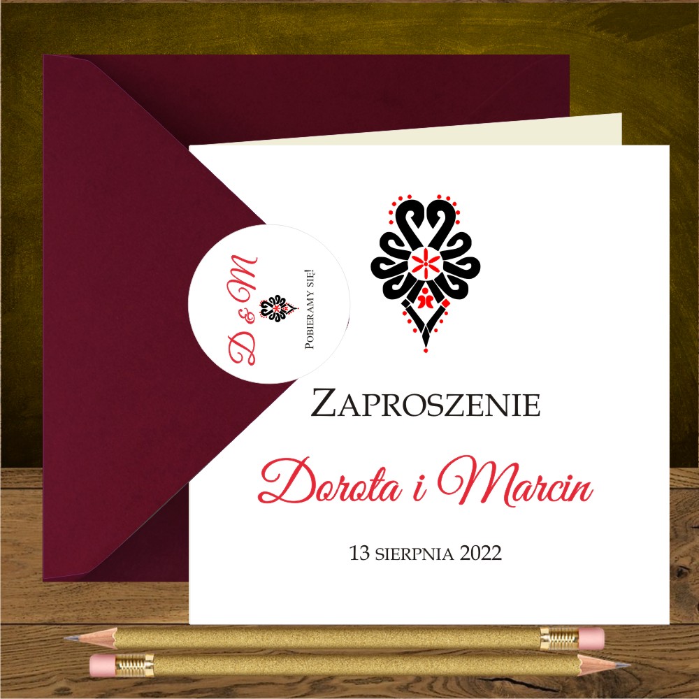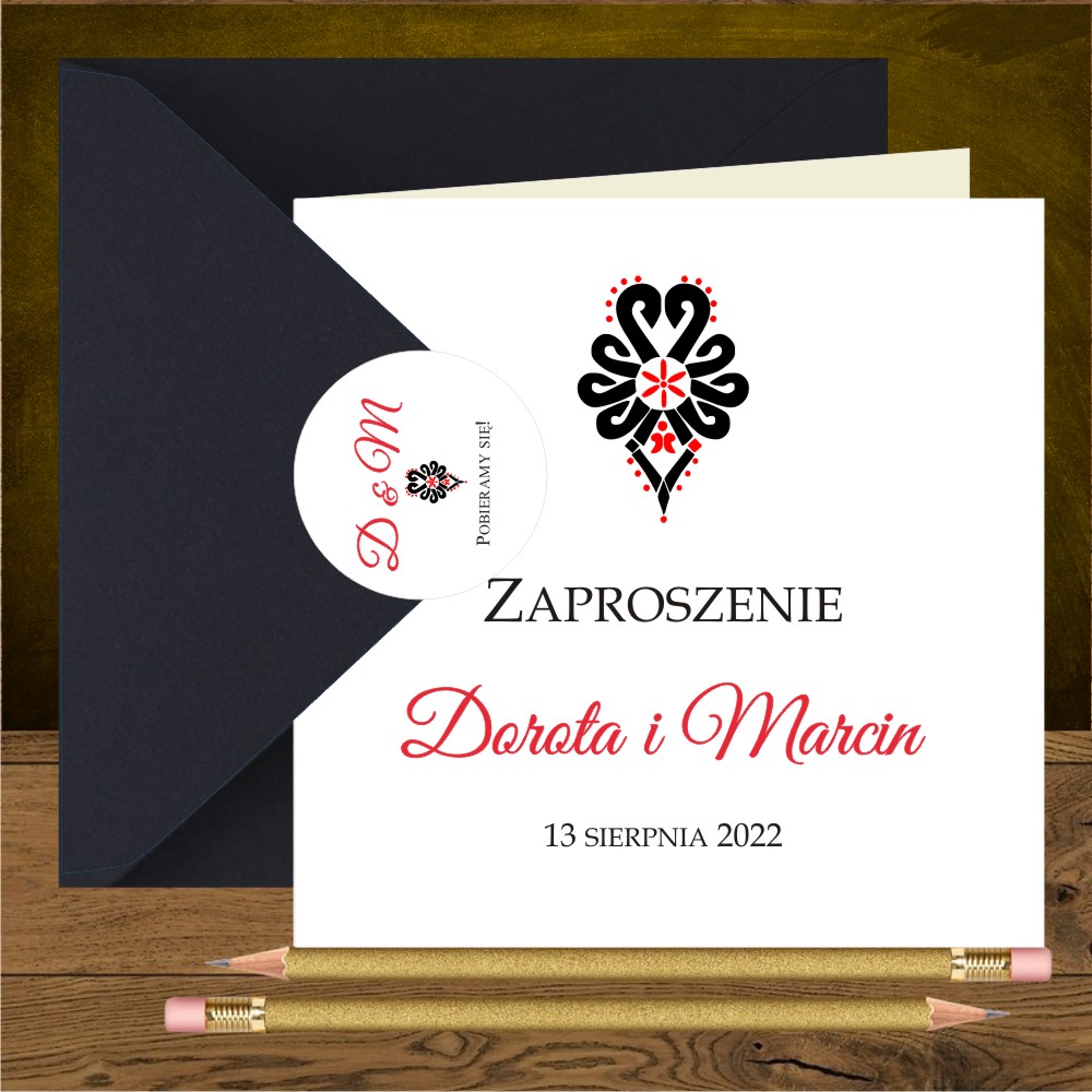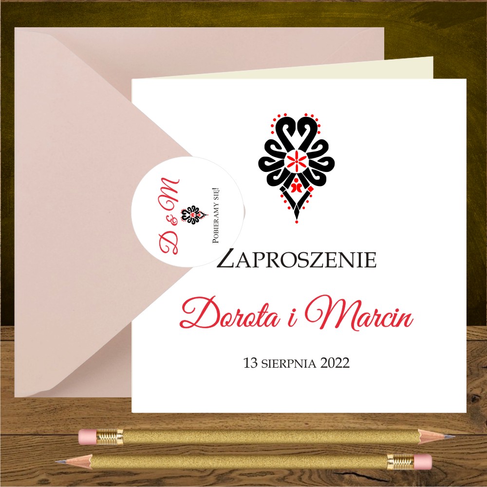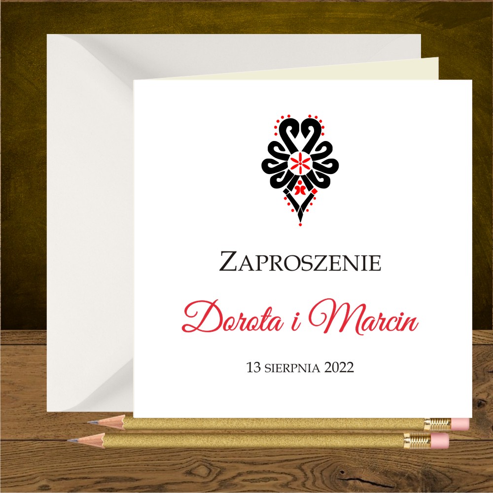 Zaproszenia góralskie z czarno czerwoną parzenicą