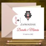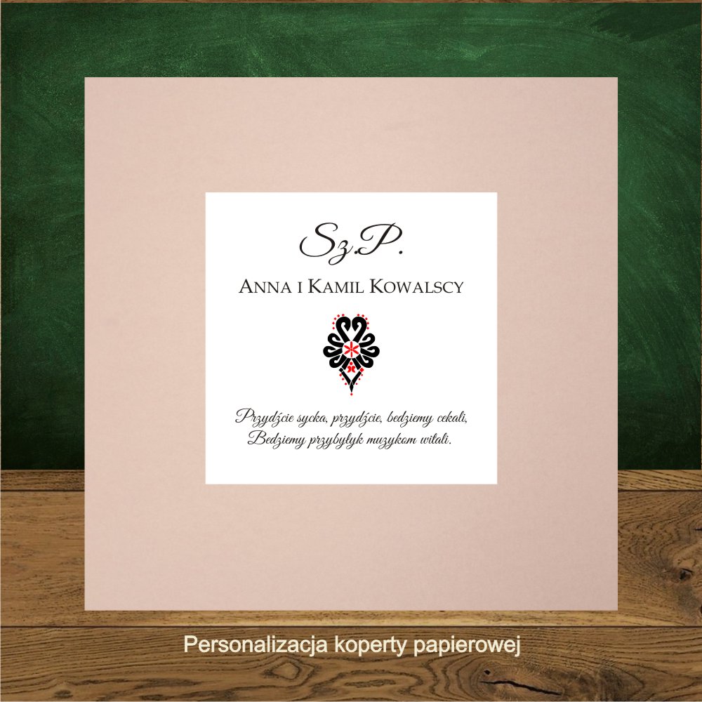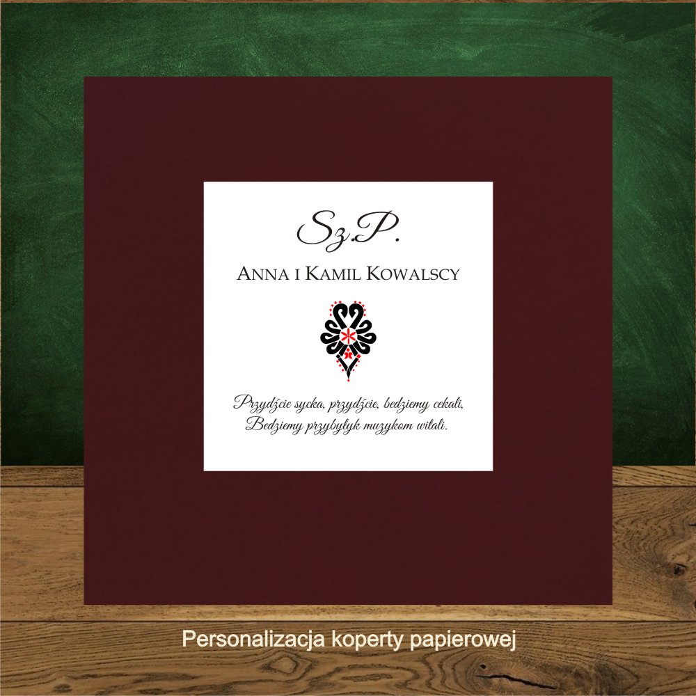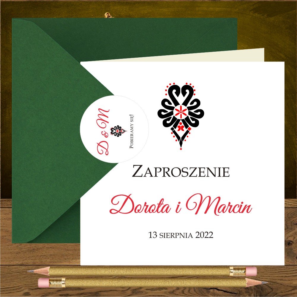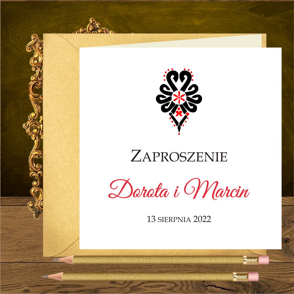Zaproszenia góralskie z czarno czerwoną parzenicą