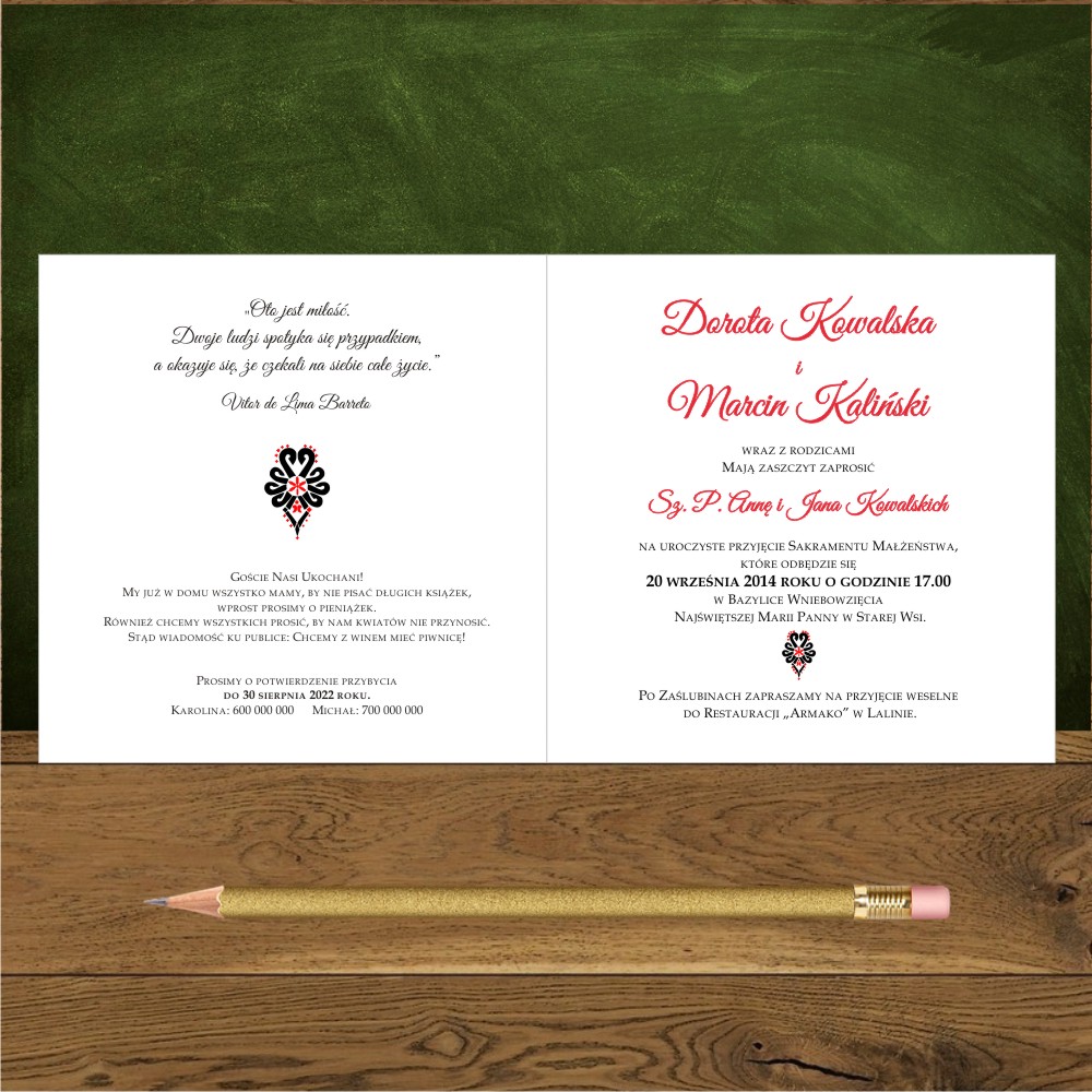 Zatem zachęcamy do zamówienia zaproszeń z zapasem.
