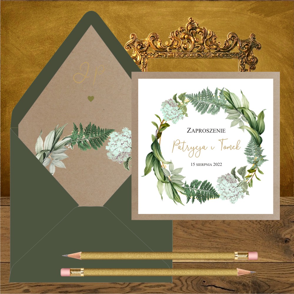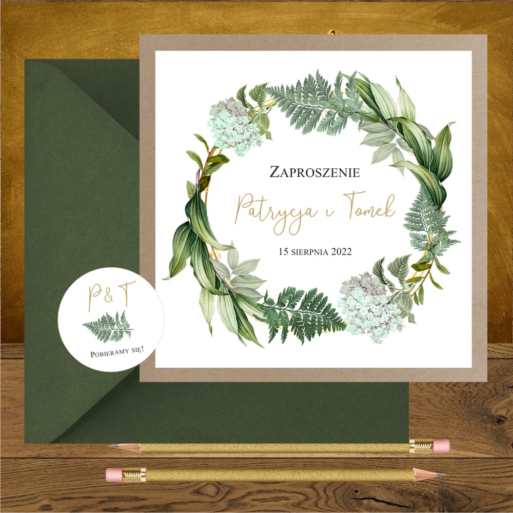 Zaproszenia ślubne boho leśne Zielony Ogród proste