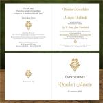 Zaproszenia na wesele góralskie – zaproszenia weselne – góralskie wesela są huczne i tradycyjne z ocepinami , gdzie Pannie Młodej zakłada się chustę tzw. kaźmierkule co symbolizuje zmianę stanu cywilnego. Panu Młodemu kradnie się pióro z kapelusza, które później musi wykupić. Coraz częściej pary decydują się na wesele w górach z cudownymi motywami góralskimi , najbardziej popularny to parzenica, haft do zdobienia portek podhalańskich. Do stworzenia tych bardzo nietypowych góralskich zaproszeń użyliśmy białego jakościowego papieru. Kwadratowe zaproszenie jest otwierane. Na środku prześliczny złoty wzór parzenicy, użyte czcionki to złota i czarna. Papeteria w stylu góralskim nowocześnie łączy się z kolorowymi kopertami : ecru, zielona, butelkowa zieleń, bordo, złoto. Zaproszenie ze złotą metalizowaną kopertą wygląda zjawiskowo, a z bordową obłędnie, dopełnieniem koperty jest dodatkowa śliczna okrągła naklejka na kopertę z folkowym ornamentem. Zaproszenie może być personalizowane w środku lub na kopercie.