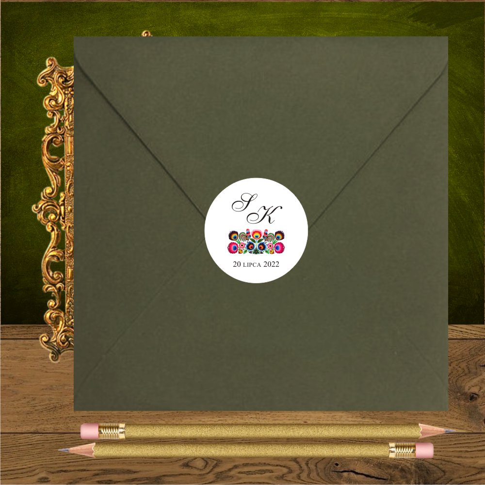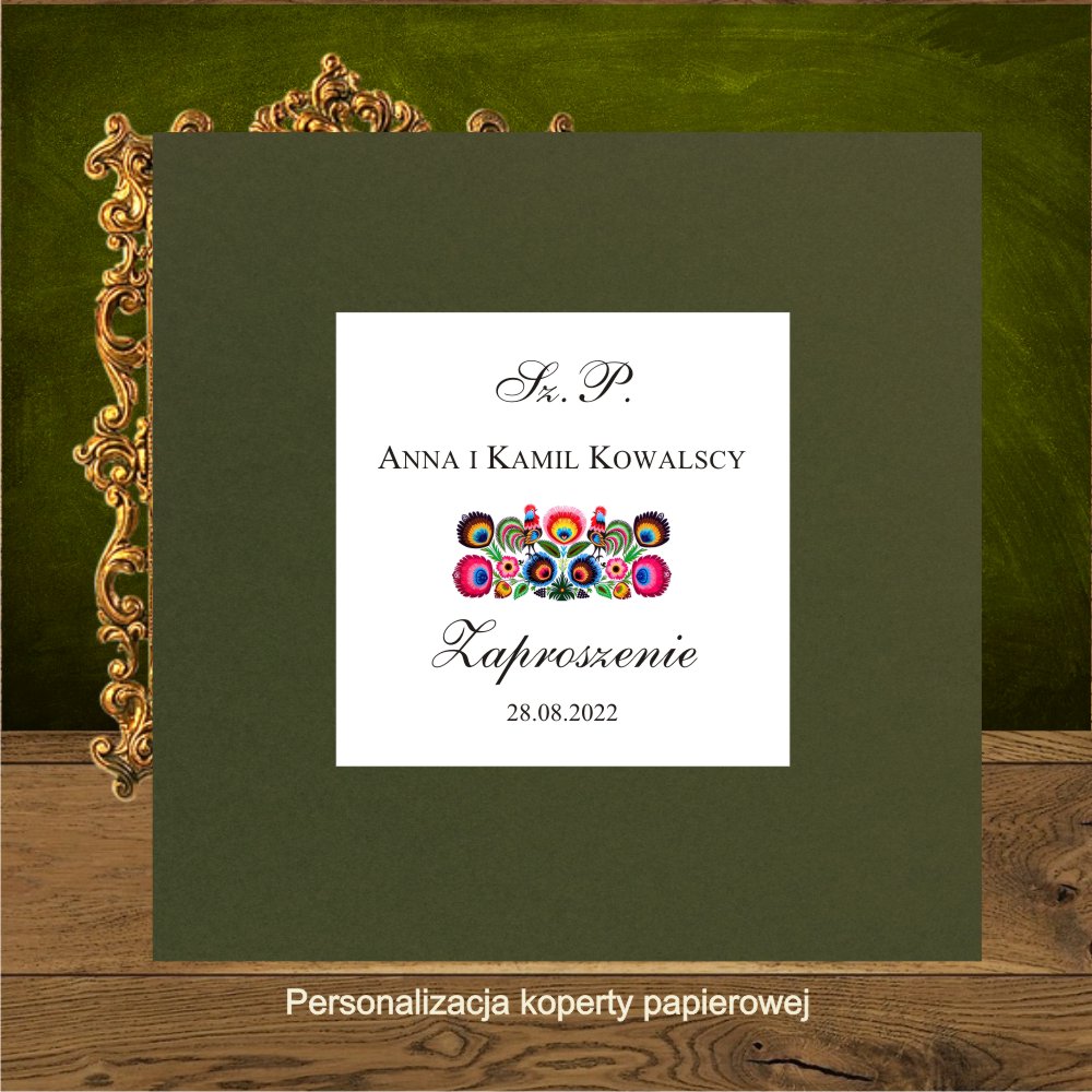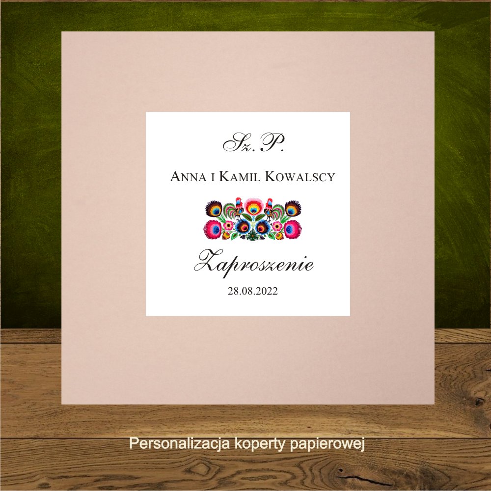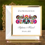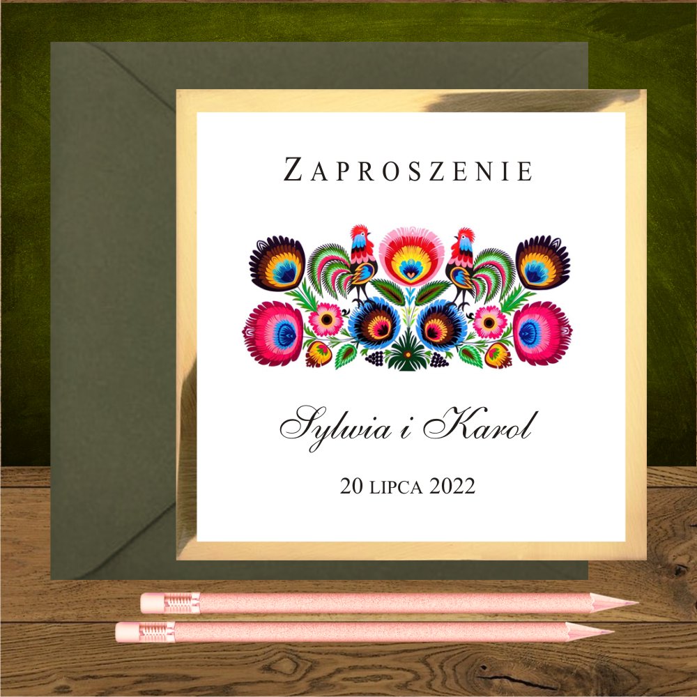 Zaproszenia na ślub i wesele w folkowym stylu, kwadratowe, proste. Folkowe