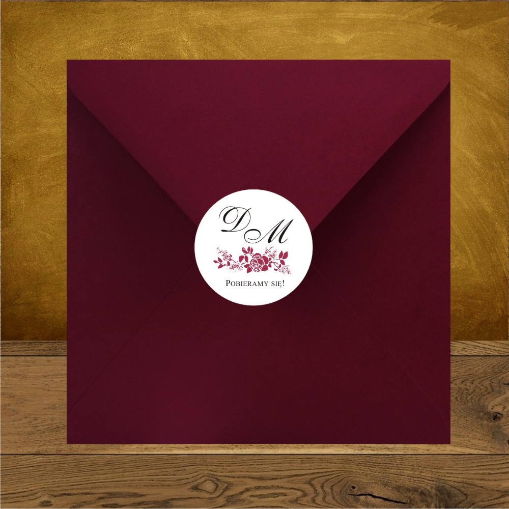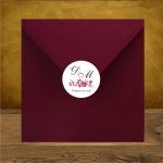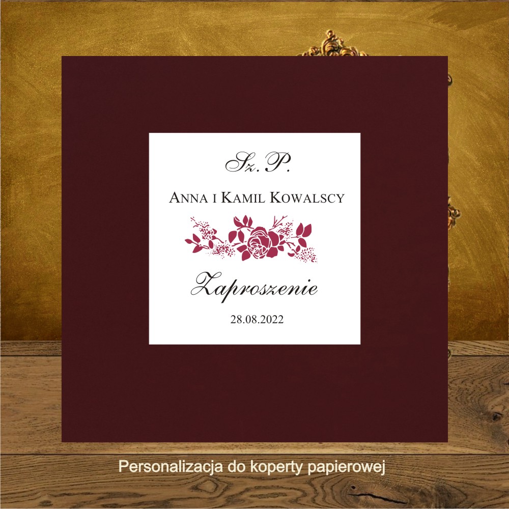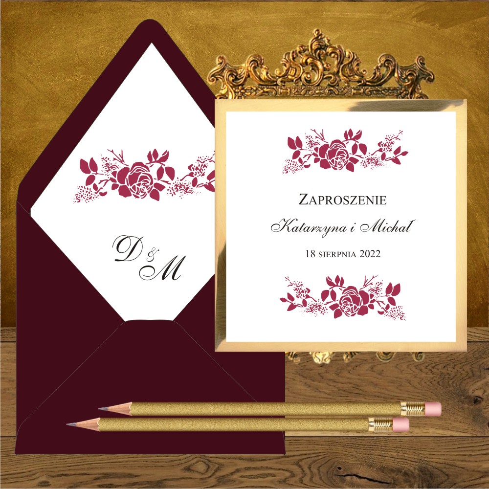 Róże bordo kwadratowe naklejane na złoty mirror. Oryginalne zaproszenia złoto - bordowe