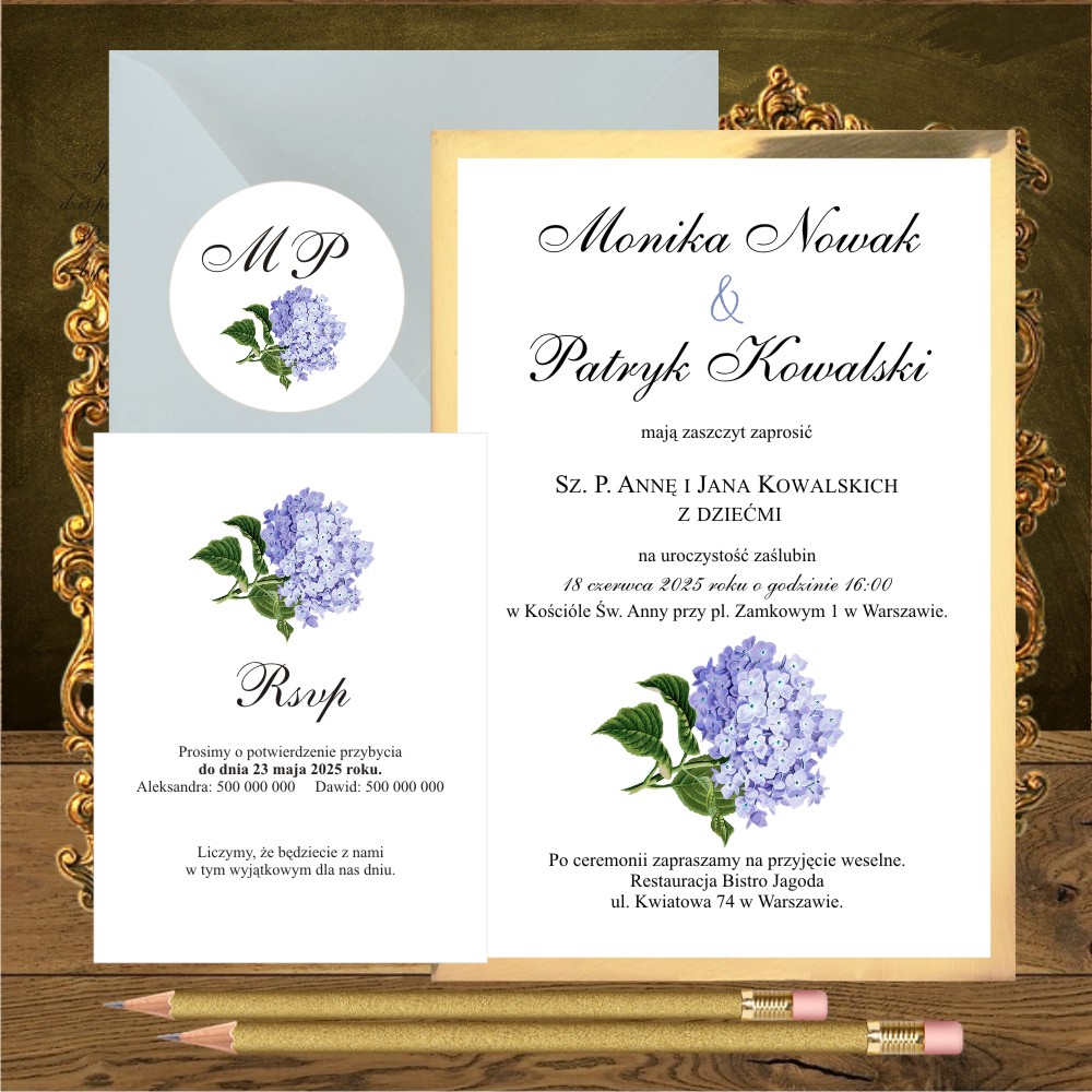 Zaproszenia jednostronne Niebieska hortensja
