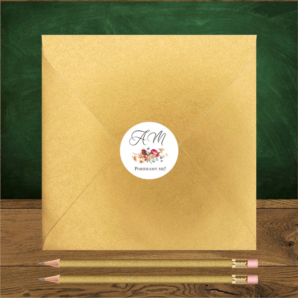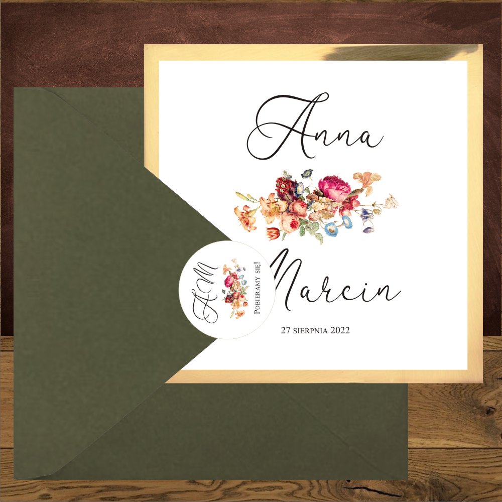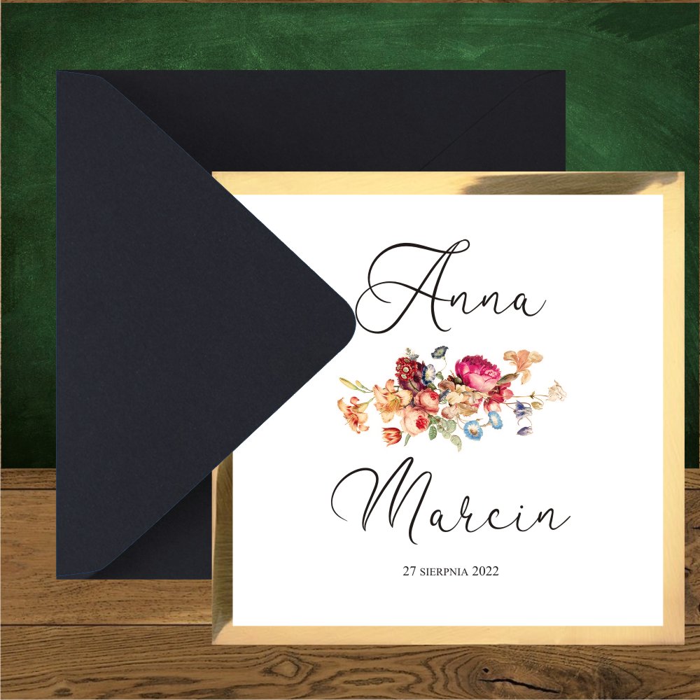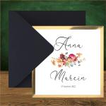 Zaproszenia ślubne Angielskie róże retro flanella - fantazyjne. Kwadratowe złoty kartonik