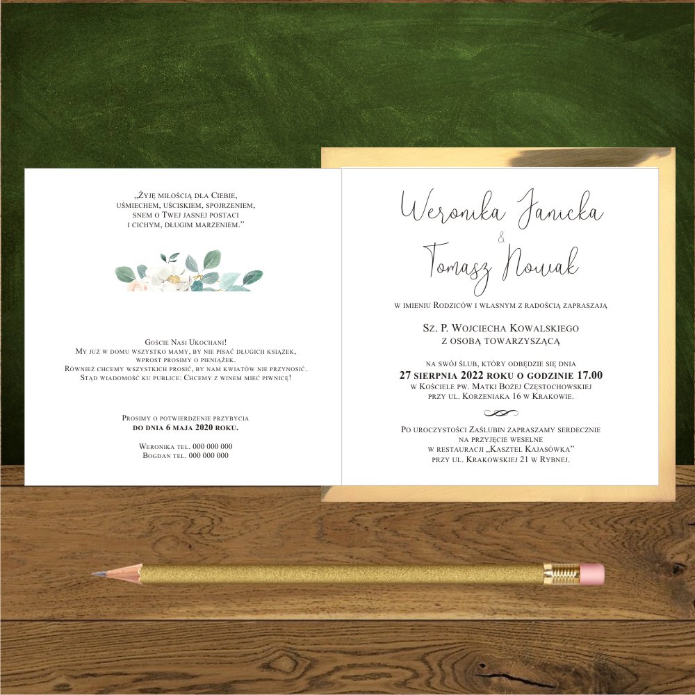 • Format zaproszenia: 14 x 14 cm po złożeniu
