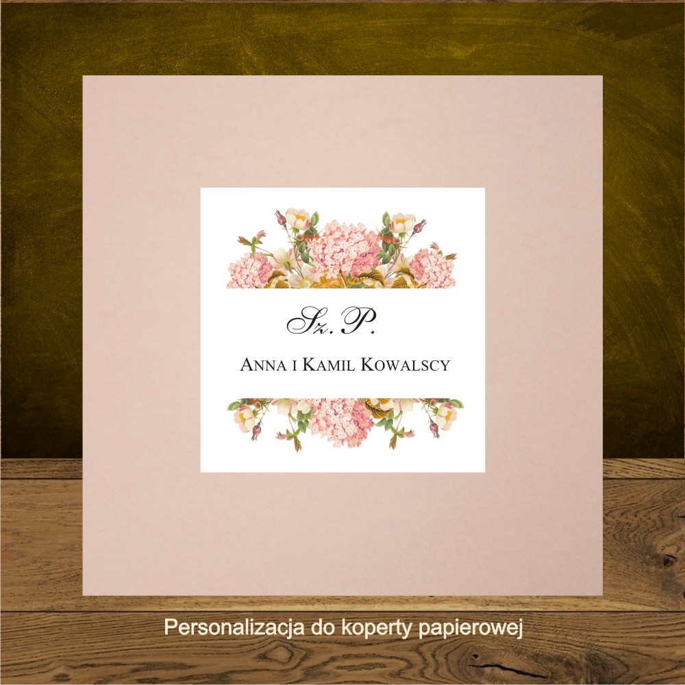 Front do pudełek na koperty Hortensje różowe i jaśmin