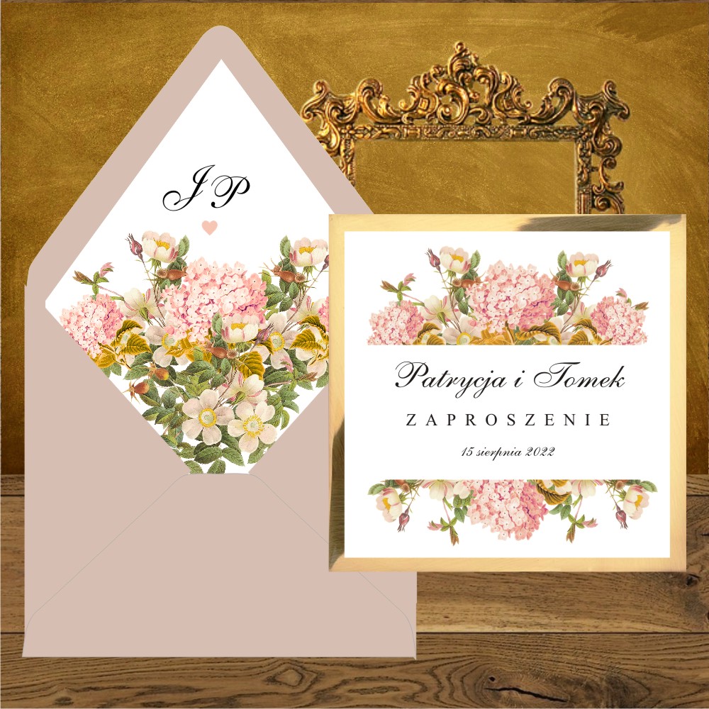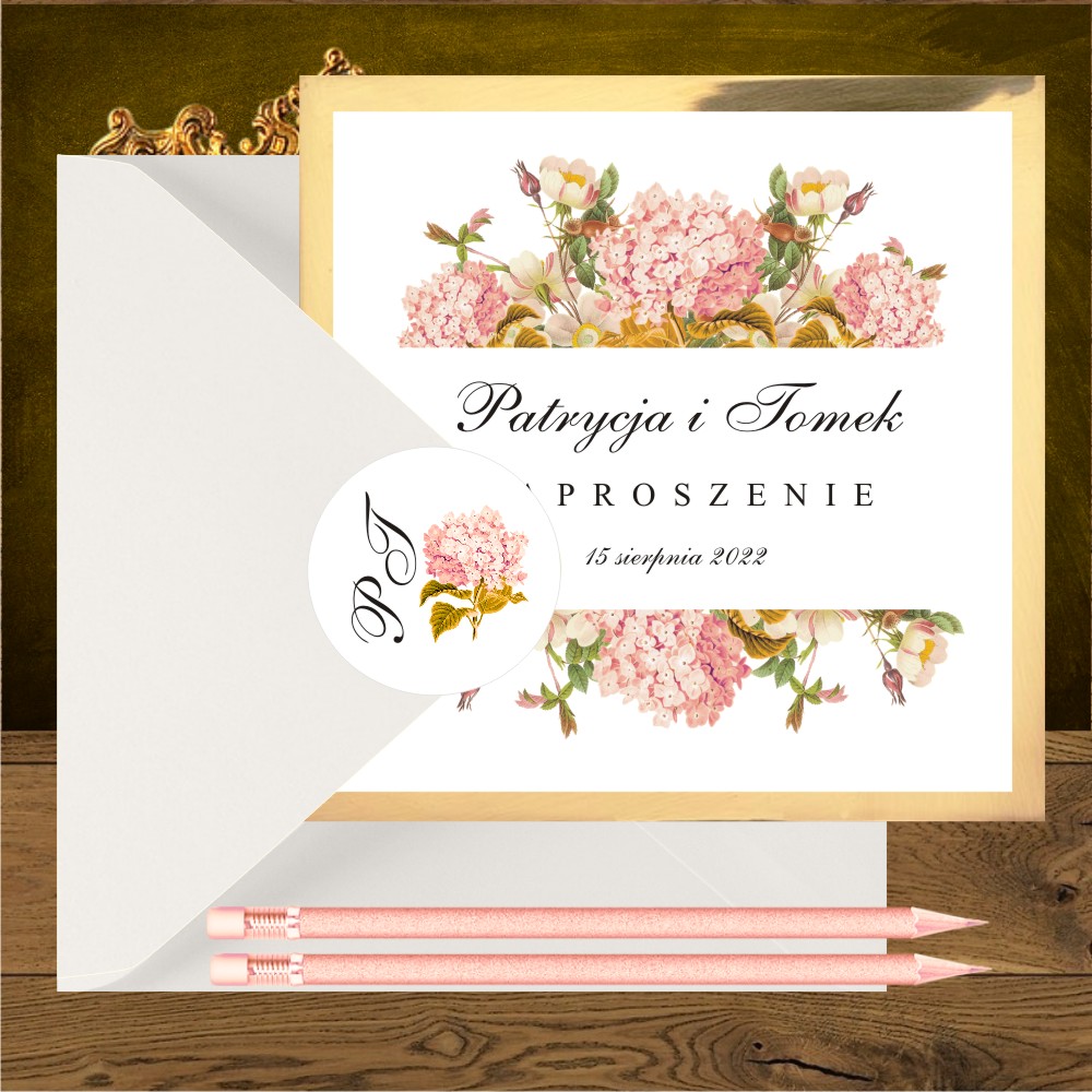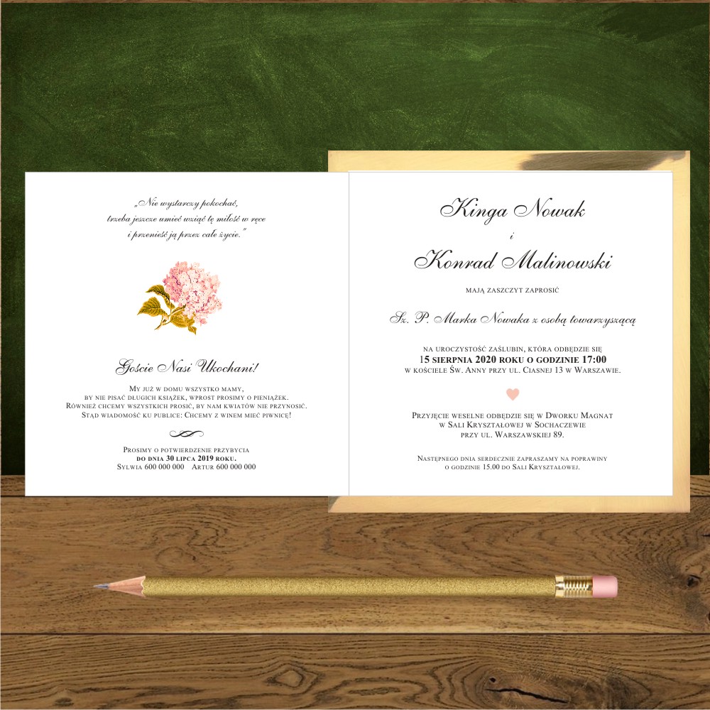 Zaproszenia ślubne hortensje różowe i jaśmin