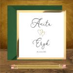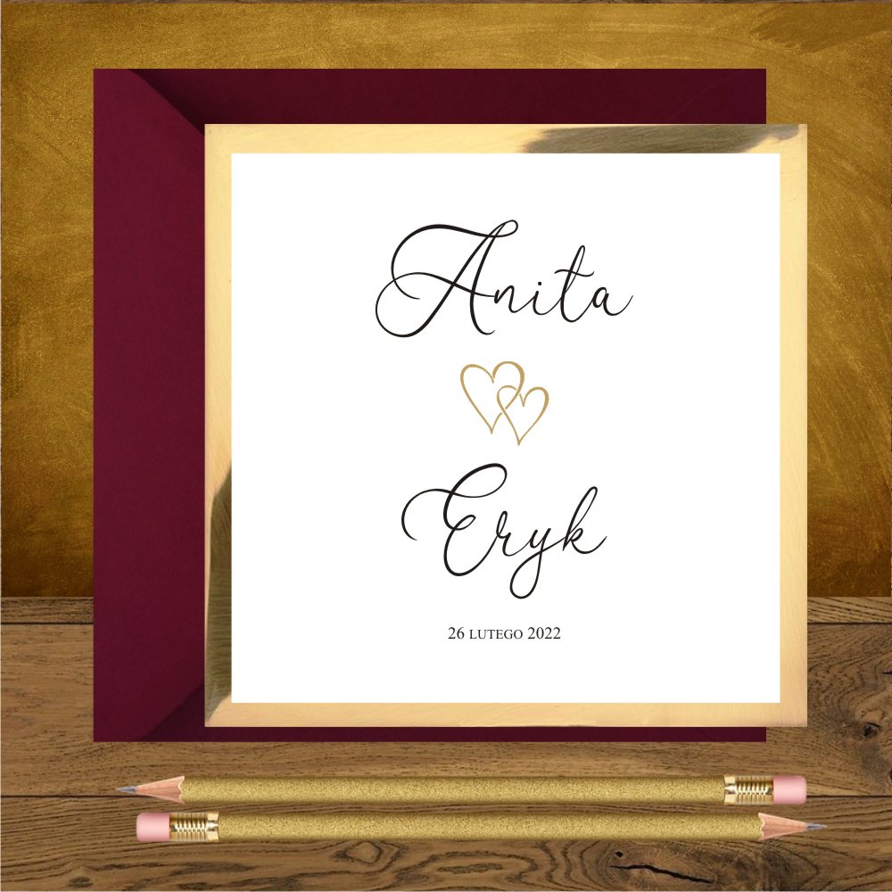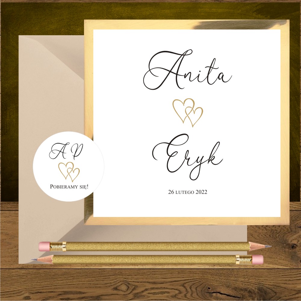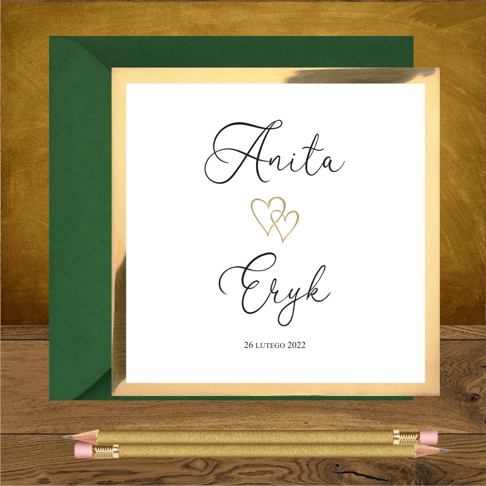 Zaproszenia ślubne minimalistyczne z dwoma złotymi serduszkami