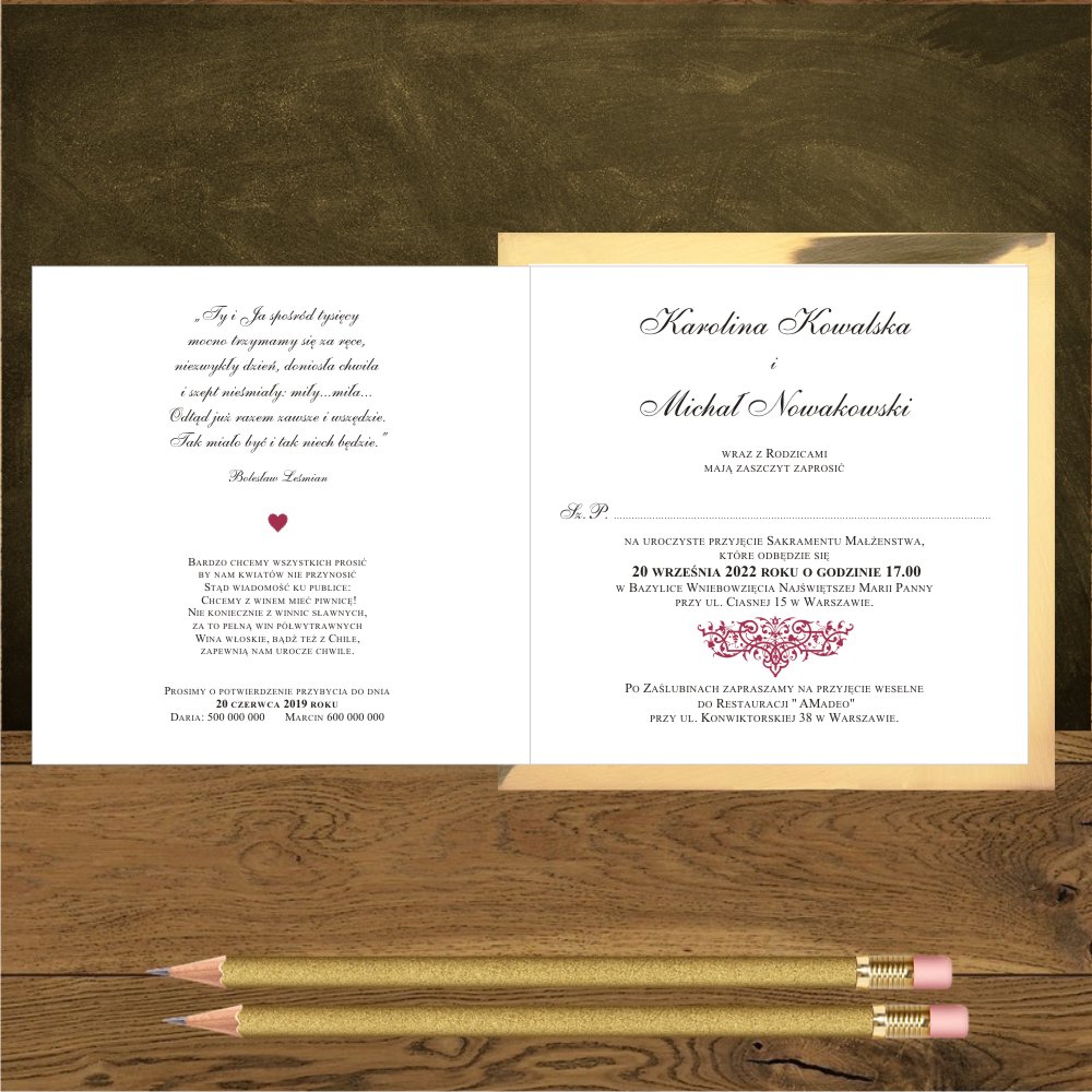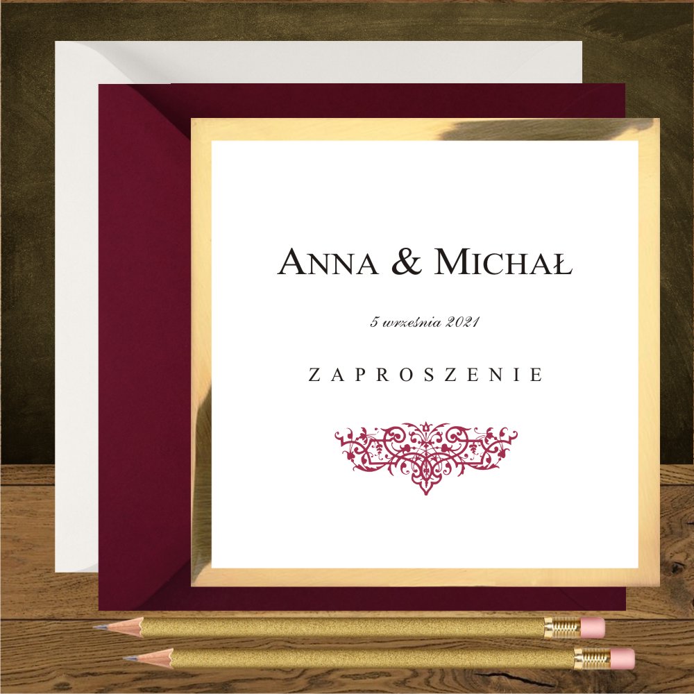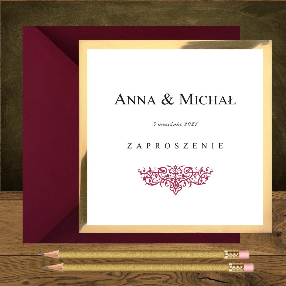 Do zaproszeń z ornamentem w kolorze bordo pasują