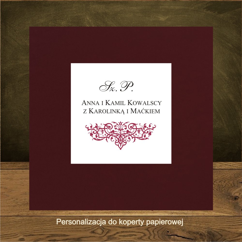 Front do pudełek na koperty.Oliwia bordo
