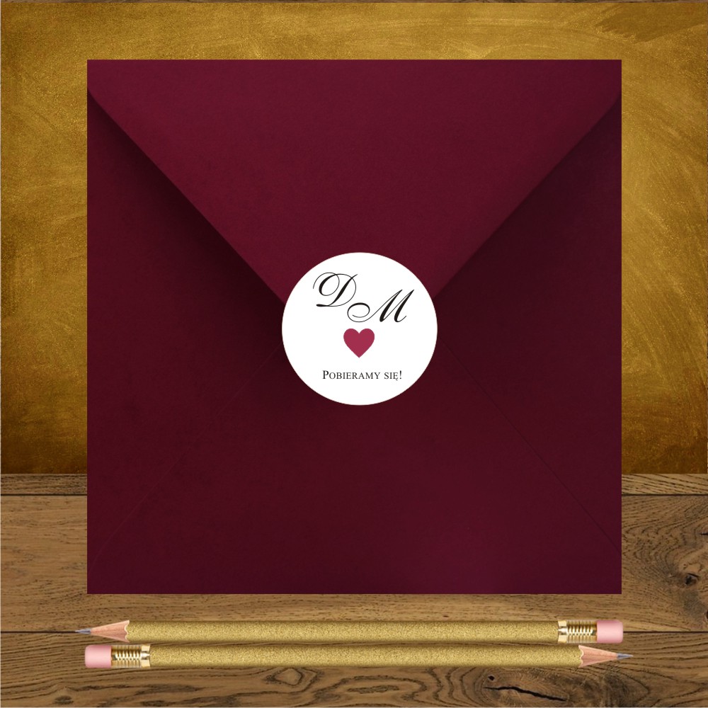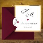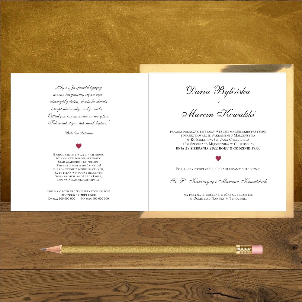 Zaproszenia weselne minimalistyczne z serduszkiem bordowym