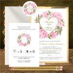 Zaproszenia ślubne z piwoniami romantyczny jasny róż i serce