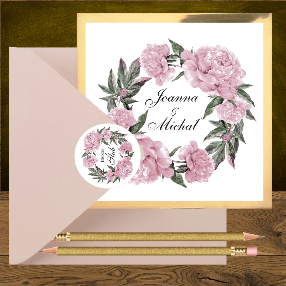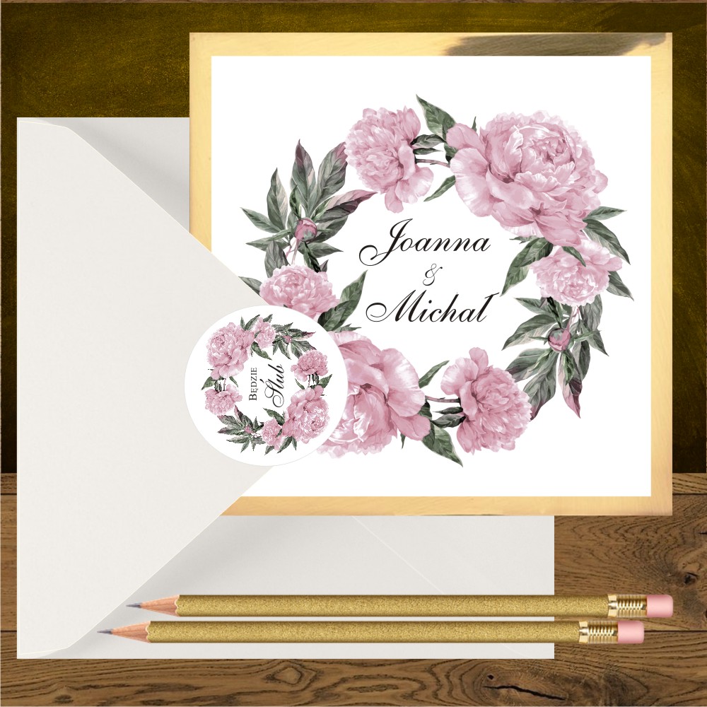 Zaproszenia ślubne piwonie. Pastelowy lodowy różowy