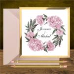 Zproszenia na wesele z piwoniami srebro różowe. Lodowy rózowy