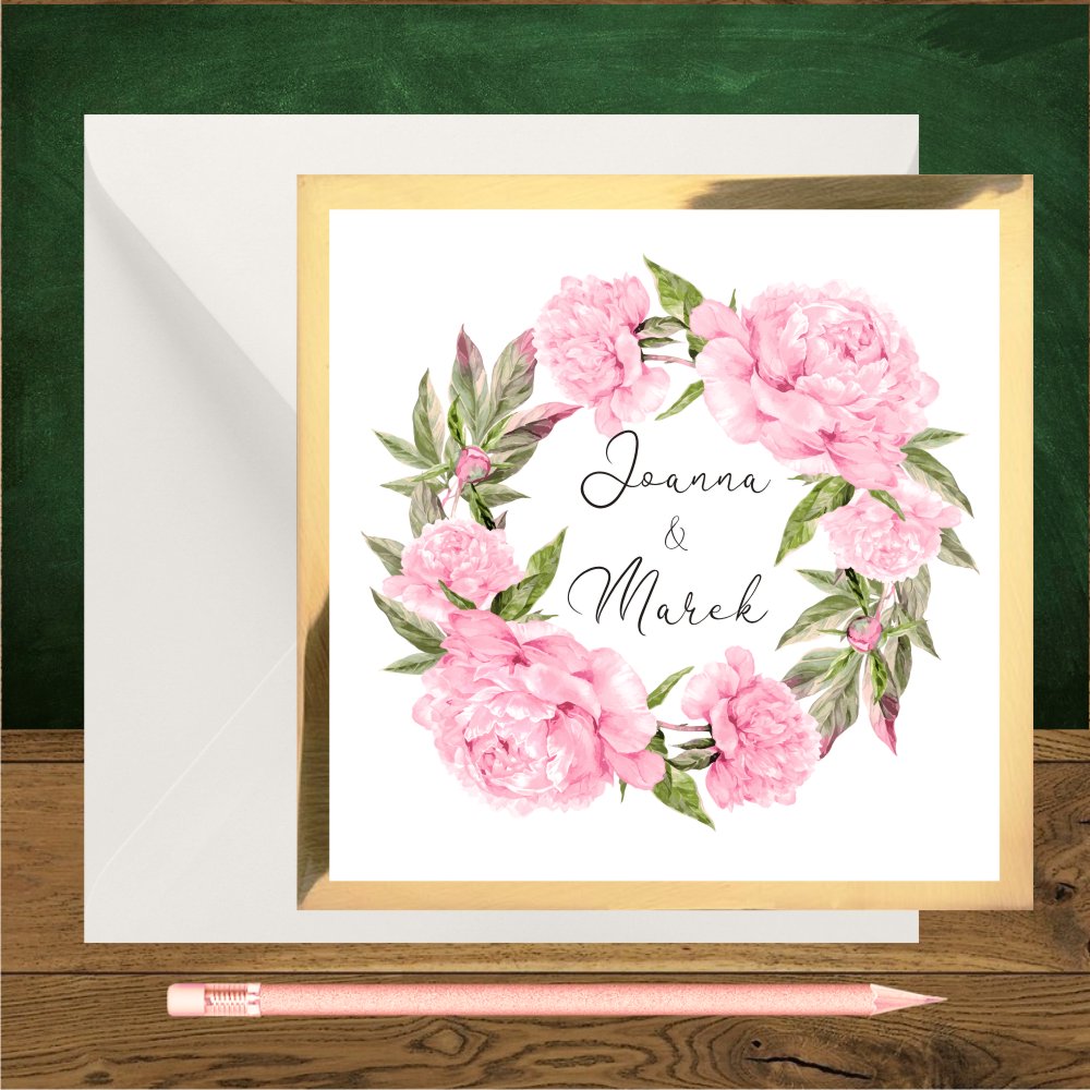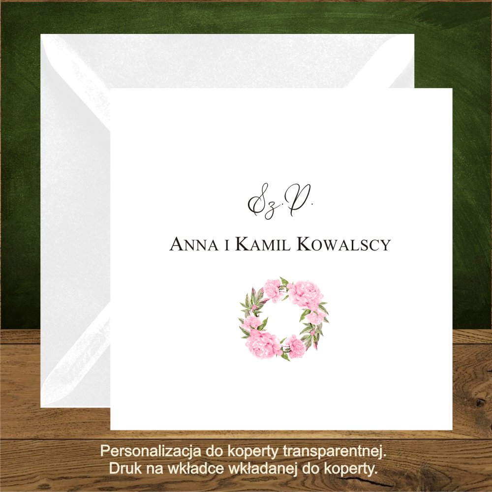 Zaproszenia ślubne jednostronne piwonie romantyczny różowy
