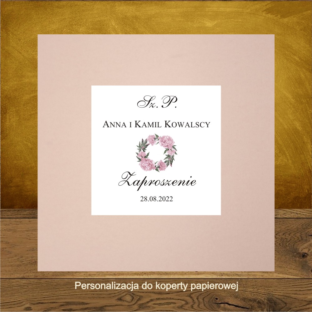 Front do pudełek na koperty Piwonie pastelowy, lodowy, rózowy. papier złoty mirror
