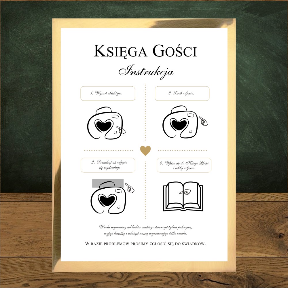 Zaproszenia ślubne minimalistyczne, kwadratowe na mirror. Serduszko złote mini-minimalistyczne