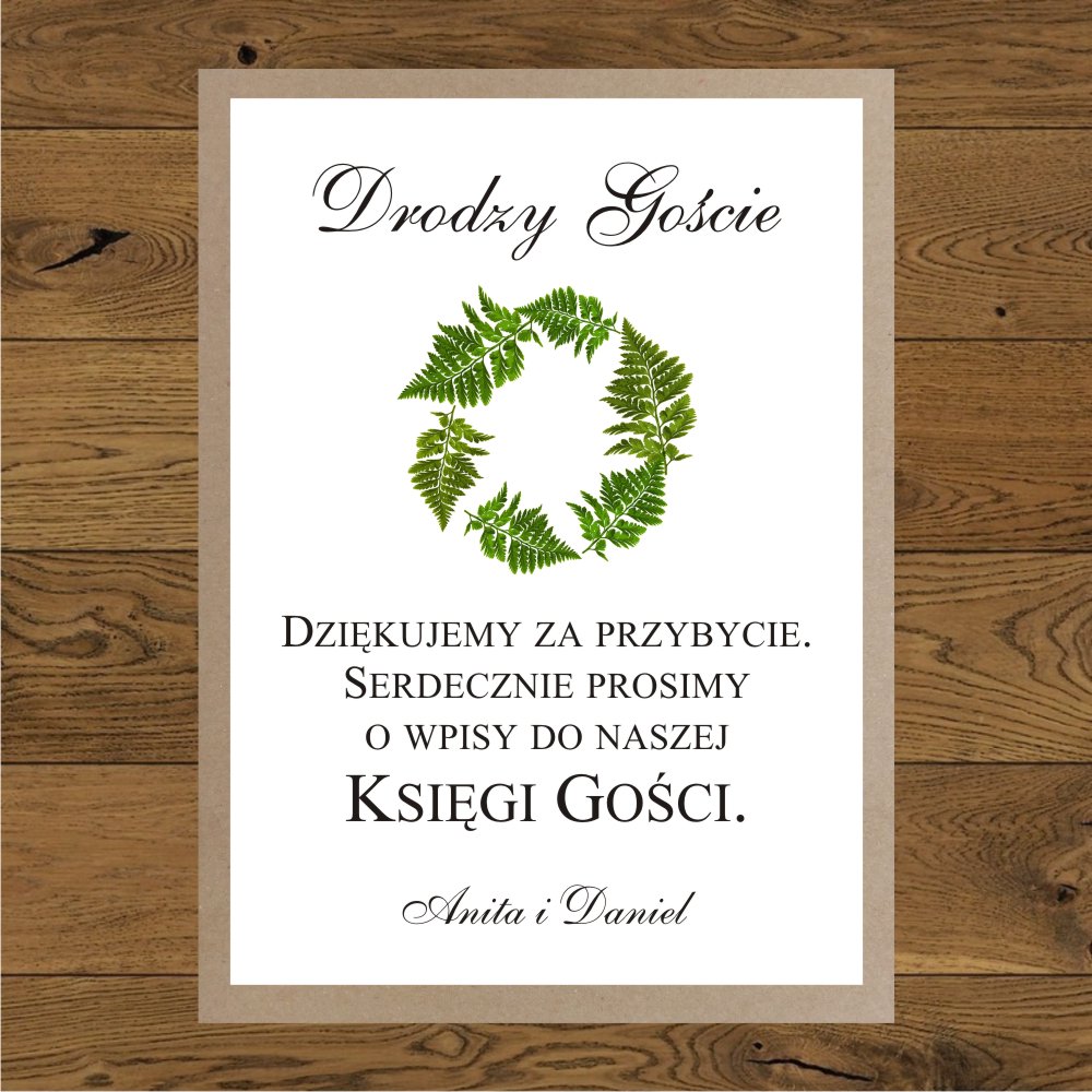 Zaposzenie ślubne z gałązkami paprotki. Kwadratowe, proste. Paprotka