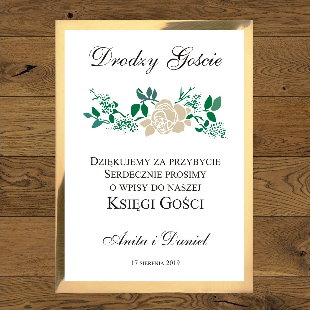 Zaproszenia na wesele rustykalne. Róże beżowe i listeczki ciemna zieleń