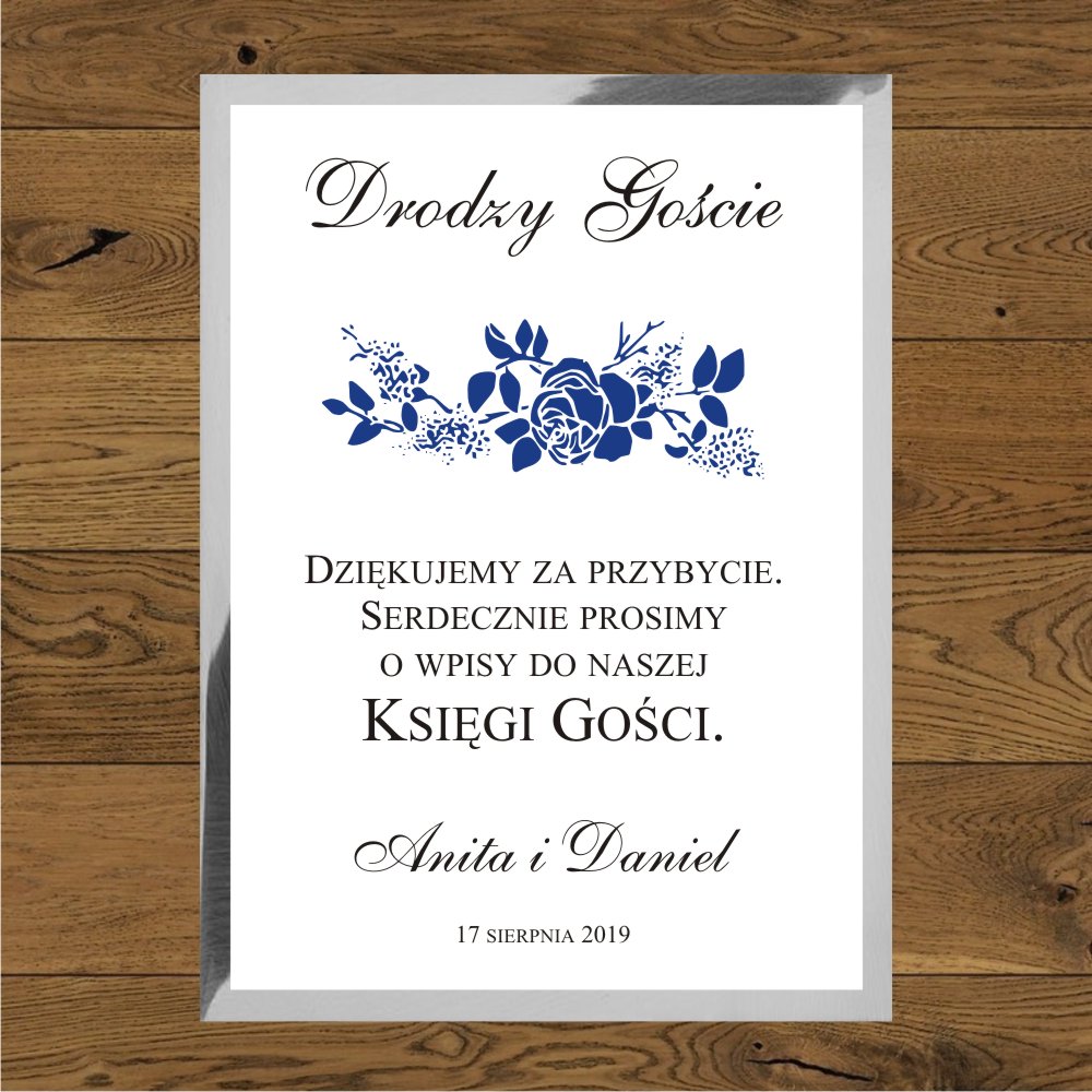 Zaproszenia ślubne Glamour Róże granatowe naklejane na złoty kartonik mirror
