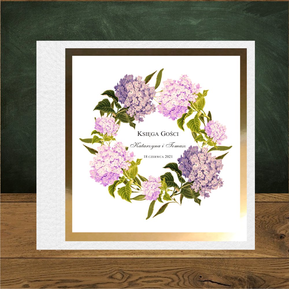 Zaproszenia na ślub z różowymi hortensjami w wianku