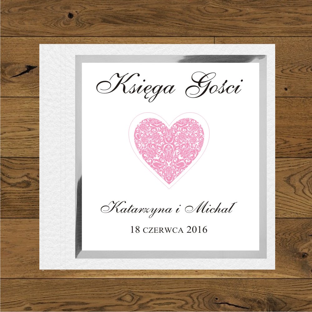 Front do pudełek na koperty.. Serce różowe. Srebrny mirror