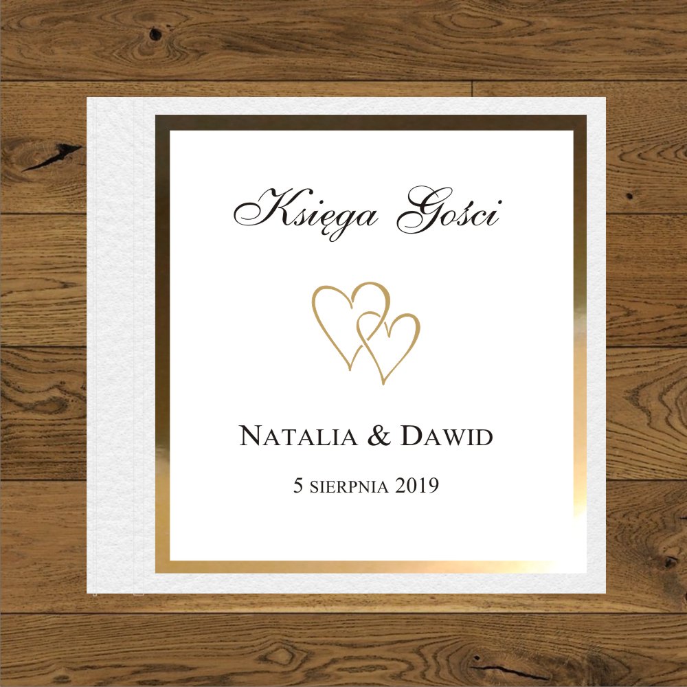 Księga gosci weselnych. Minimalistyczne dwa małe serduszka złote