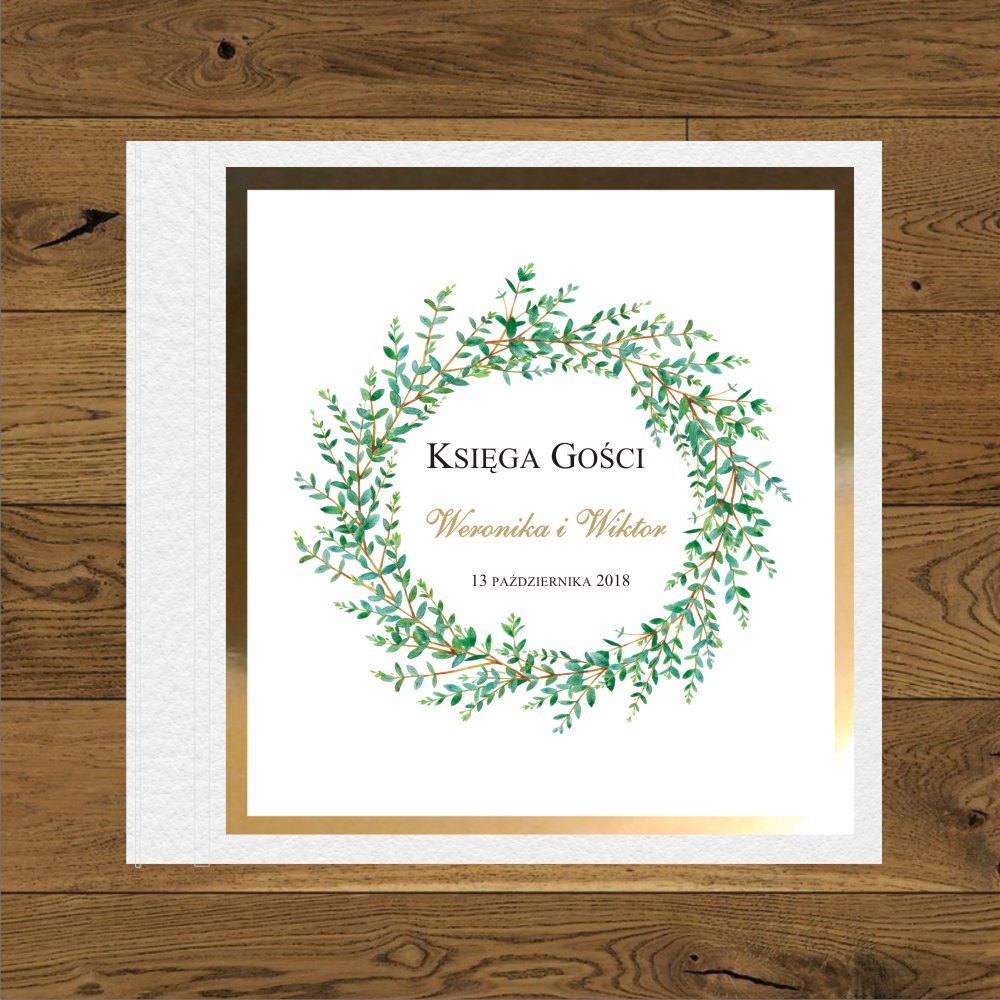 Księga Gosci Wianek zielone gałązki - księga biała, mirror złoty