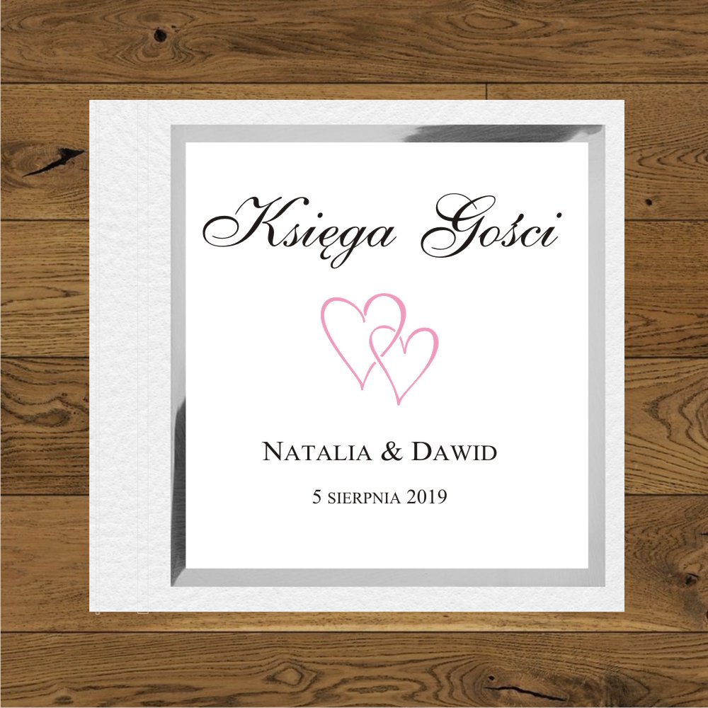 Minimalistyczne dwa małe serduszka różowe. Papier biały i srebrny mirror