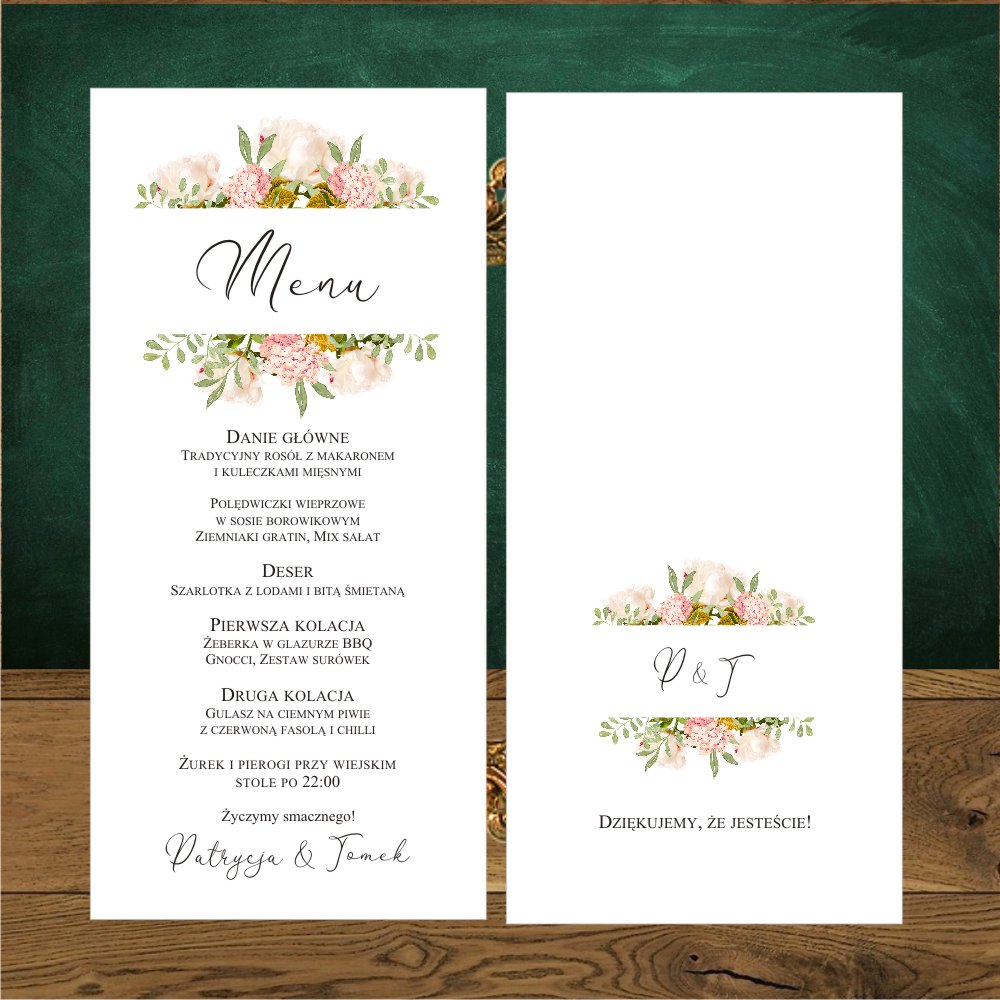 Menu na stół weselny.Piękne romantyczne w stulu boho.