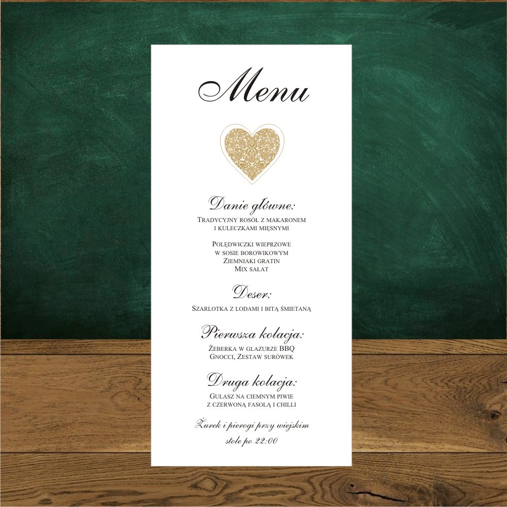 Zaproszenia ślubne glamour z sercem na złotym kartoniku. Serce złote