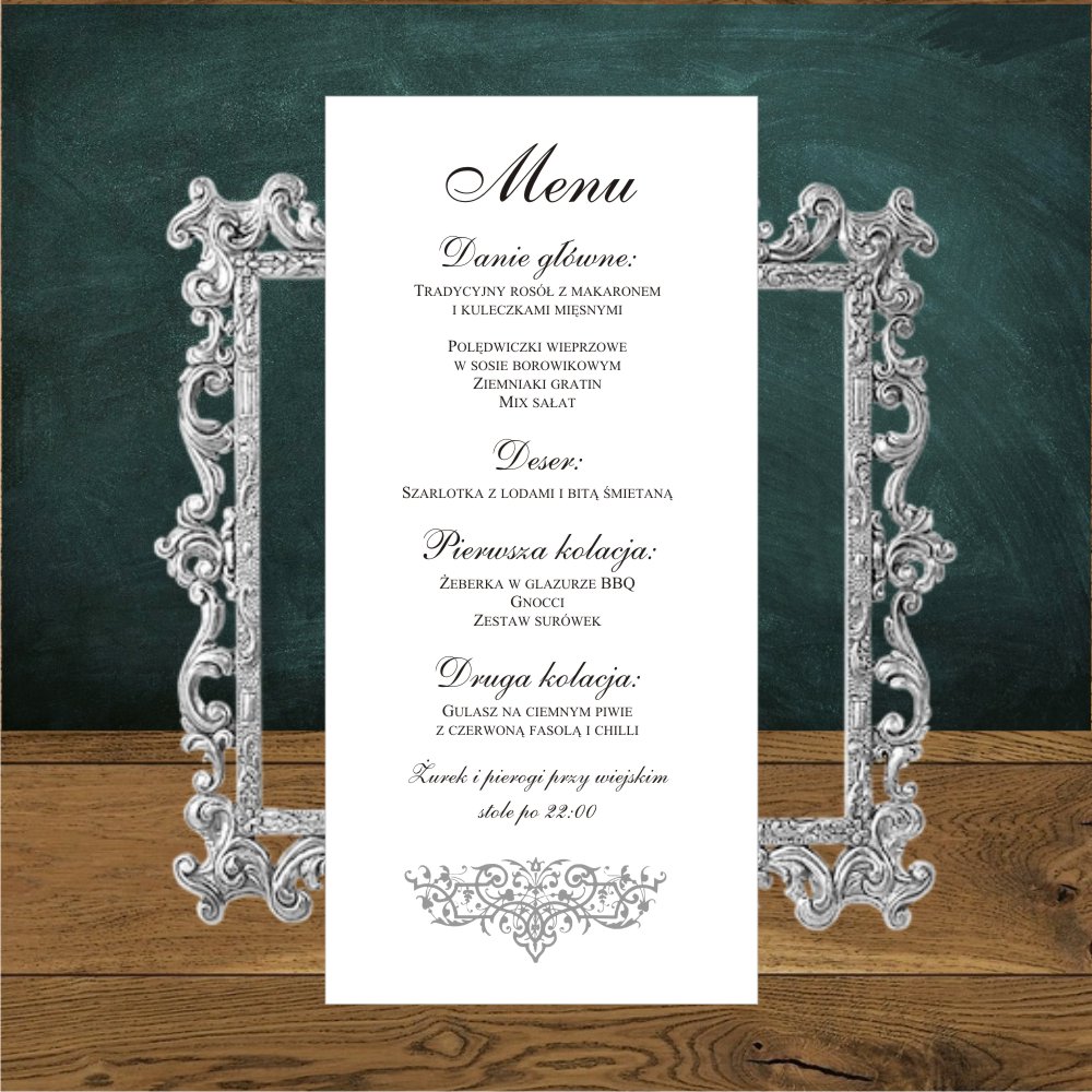 Zaproszenia na ślub ze srebrnymi ornamentami. Oliwia srebro