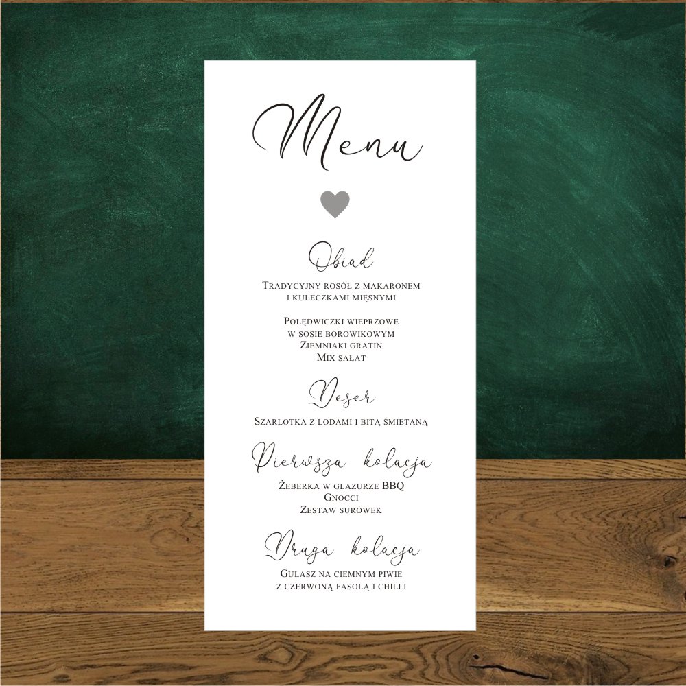 Menu weselne na stoły. Nowoczesne, proste, glamour.
