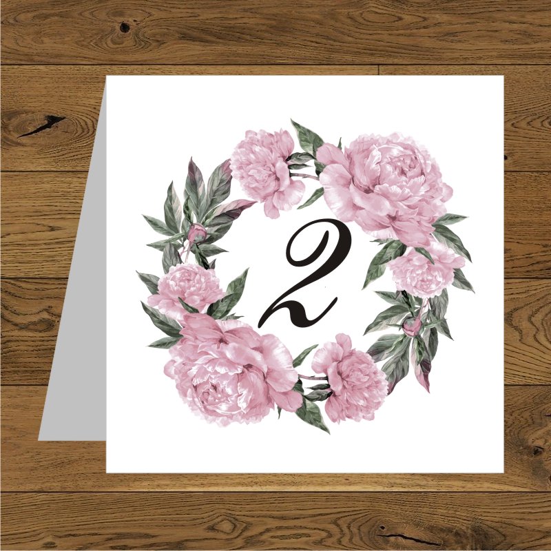 Piwonie- wianek pastelowy różowy jednostronne menu weselne