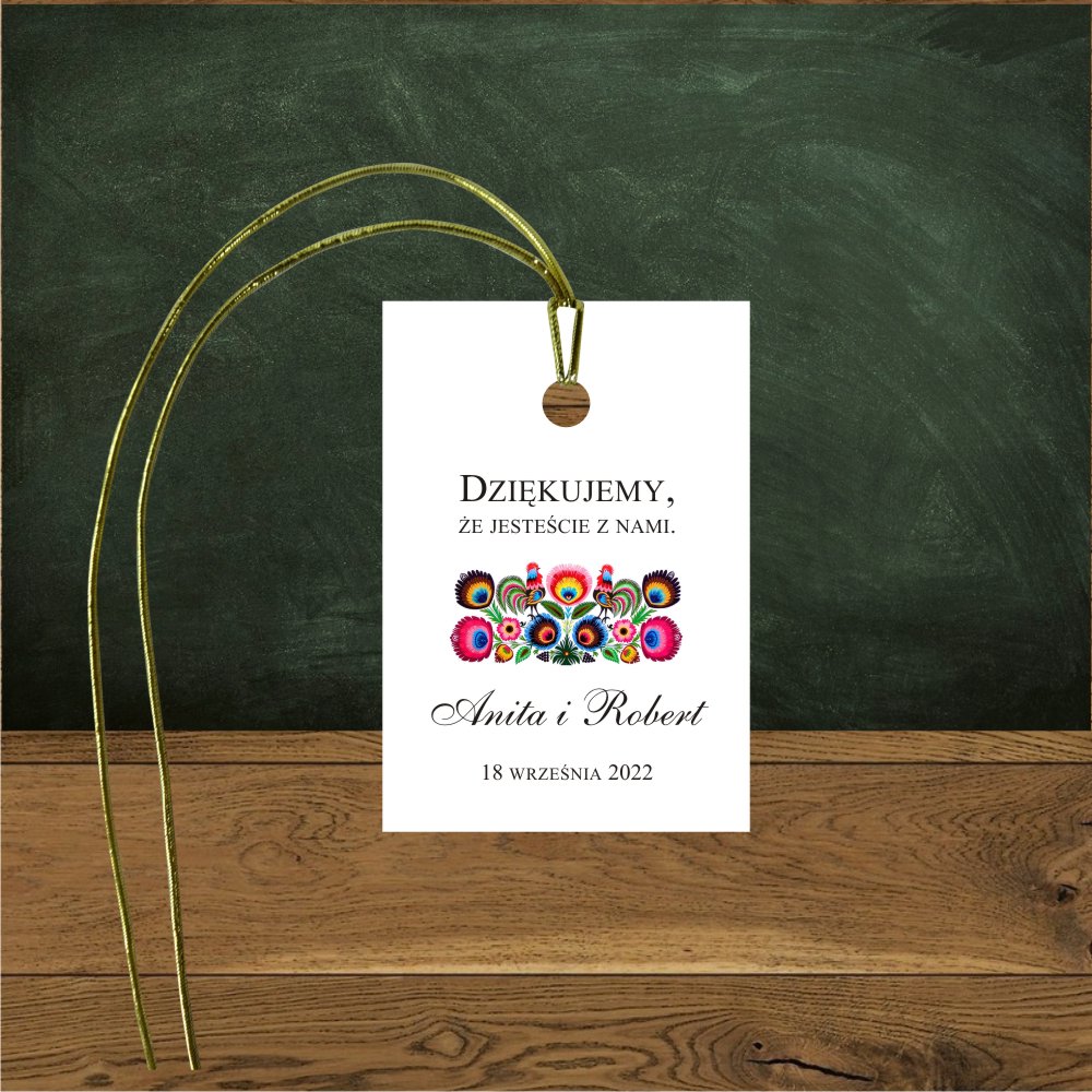 Zawieszki do zawiązania prezencików. Te tutaj z Folkowym wzorem.