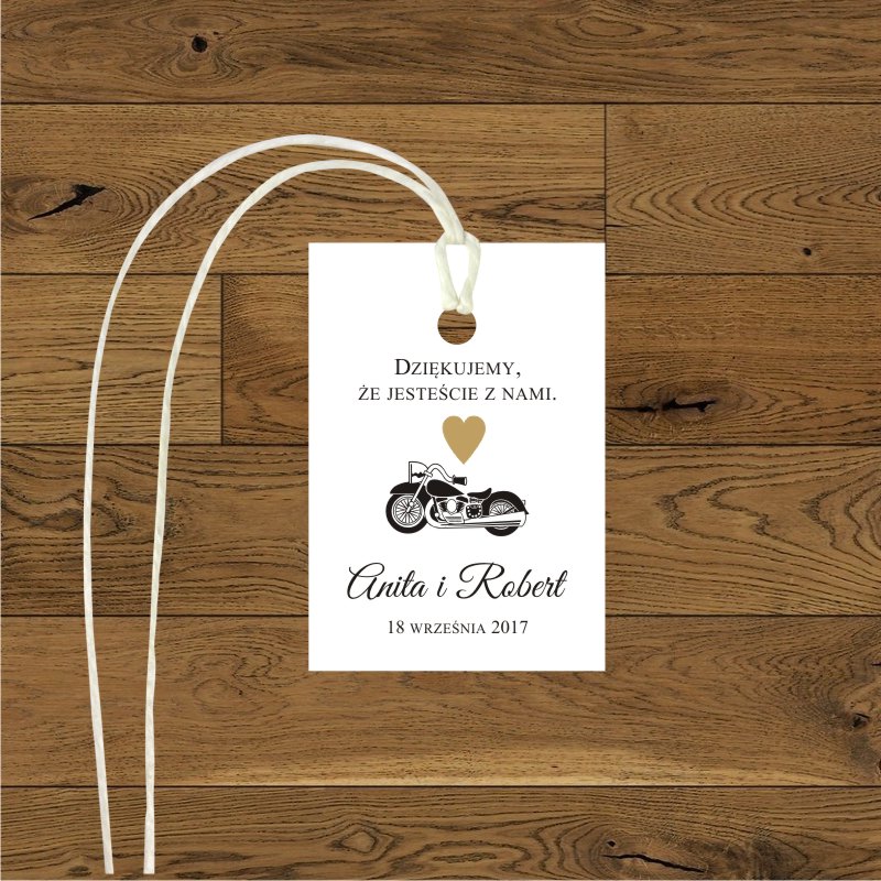 Zaproszeia ślubne z motocyklem i złotym serduszkiem. Kwadratowe, proste. Motor