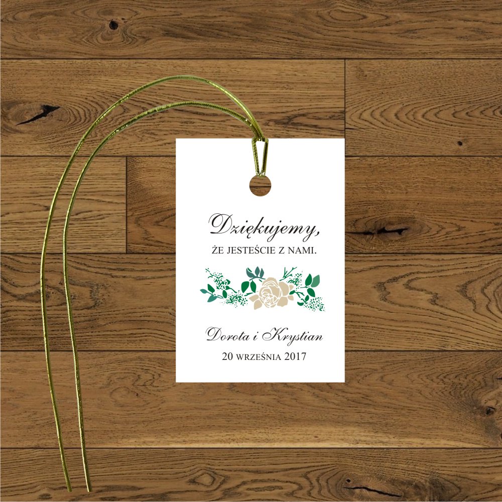 Zaproszenia na wesele rustykalne. Róże beżowe i listeczki ciemna zieleń