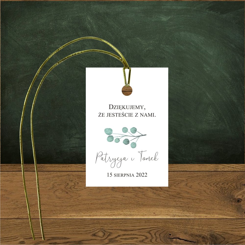 Zaproszenie ślubne zielone złote eukaliptus i heksagon