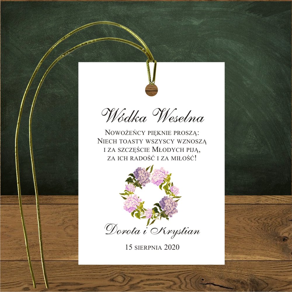 Zaproszenia na ślub z różowymi hortensjami w wianku