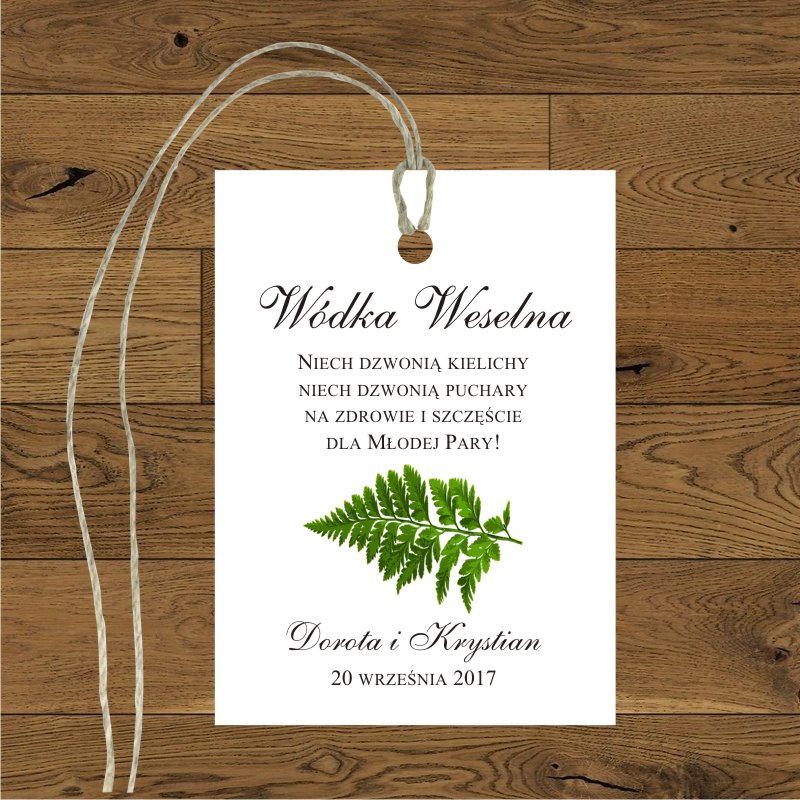 Zaposzenie ślubne z gałązkami paprotki. Kwadratowe, proste. Paprotka