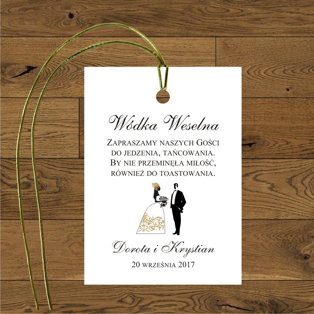 Para młoda ornament na sukni złoty. Przywieszki na wódkę weselną