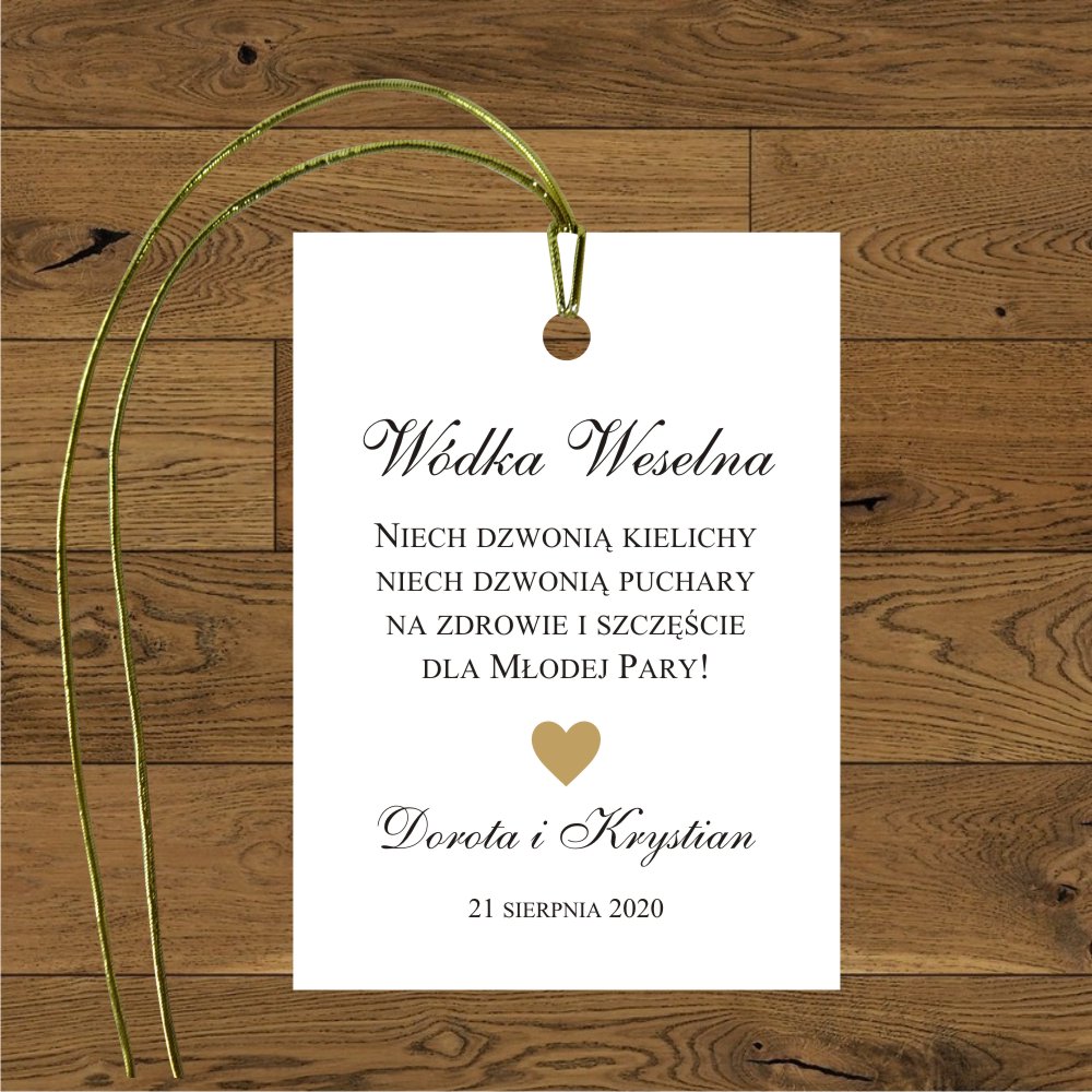Serduszko złote mini. Przywieszka na wódkę weselną