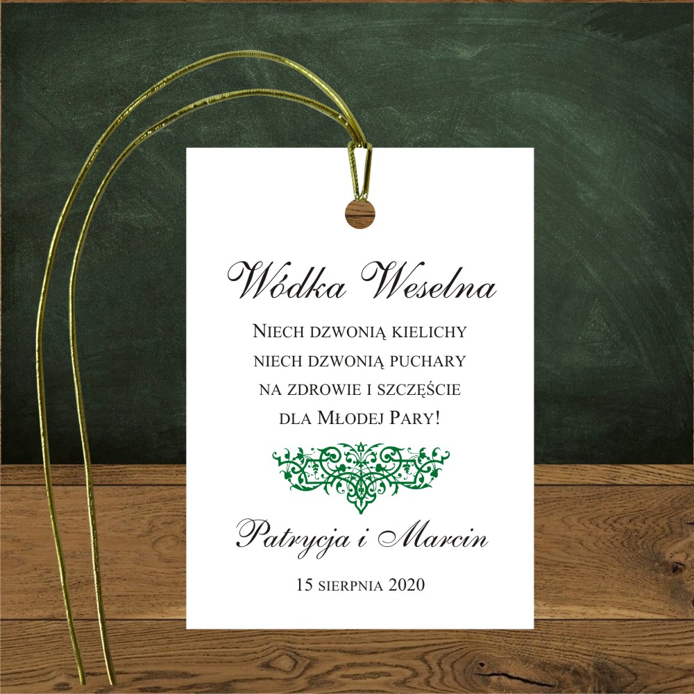 Zawieszki na wódkę weselną. Oliwia zielona