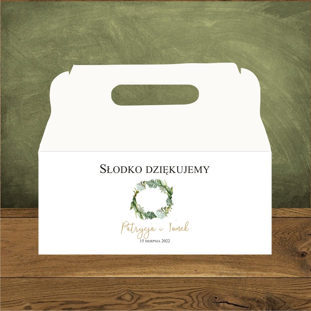 Pudełka na ciasto weselne - zielony ogród